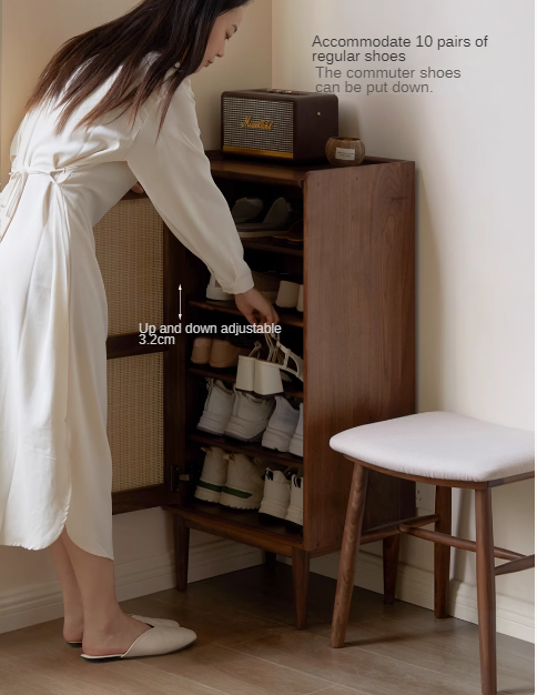 The designer said that the single-door shoe cabinet with less than half a meter can be easily stuffed into narrow corners to store commuter shoes. The countertop takes into account the daily storage function and improves space utilization.