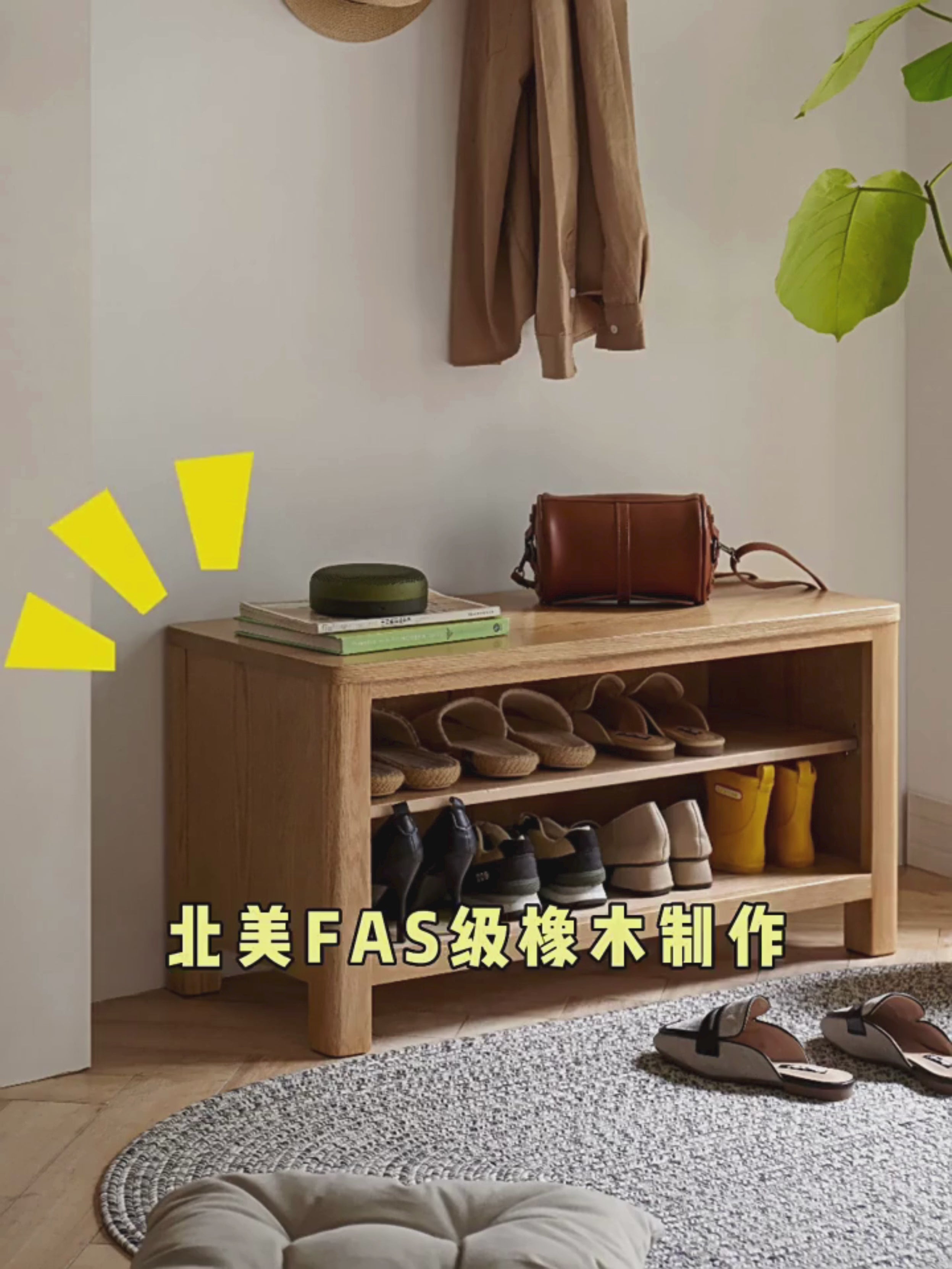 Where is this shoe changing bench? 1. Multifunctional, not only a shoe changing bench, but also a small shoe cabinet! 2. Safe to use, 100% pure solid wood, safe and healthy! There are more excellent little details, come and take a look with me.