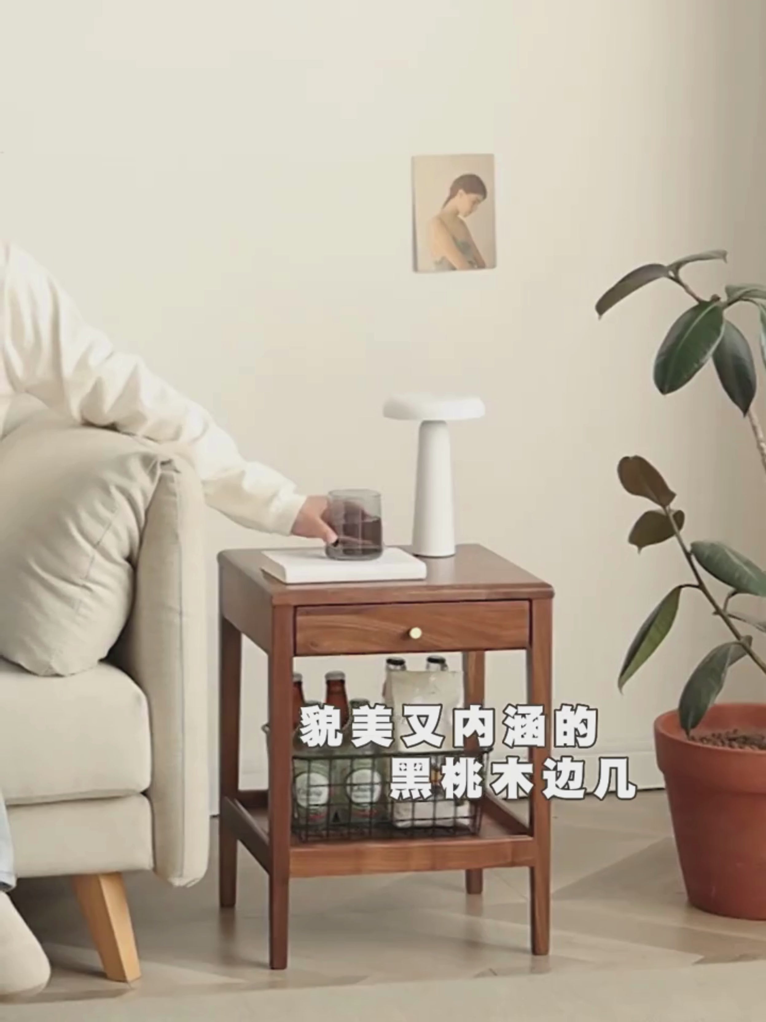 A founder's easy-to-use side table, with the addition of warm and tired walnut wood, makes the whole more temperament, intimate pumping and open compartments make storage more convenient.