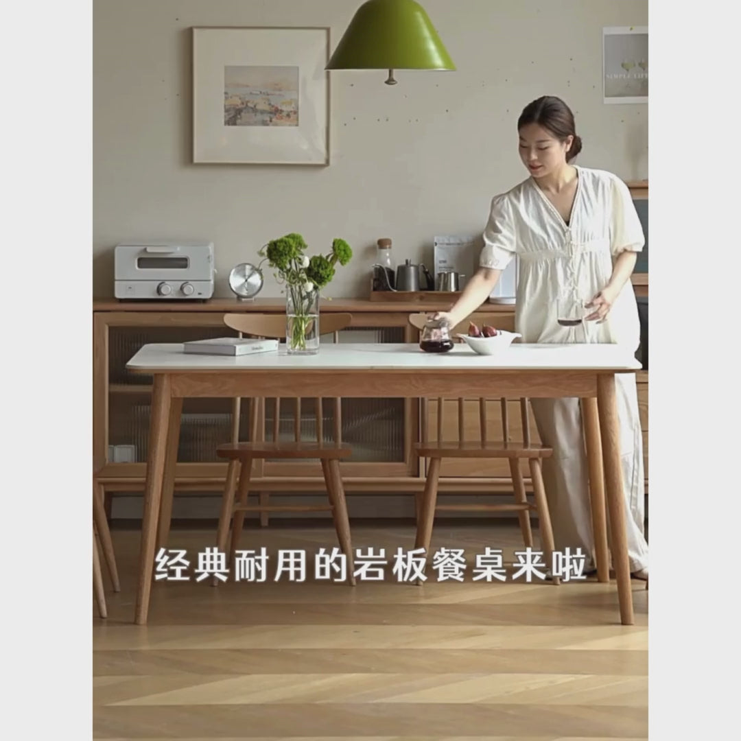 Oak Solid Wood Dining Table With Rock Slab Surface