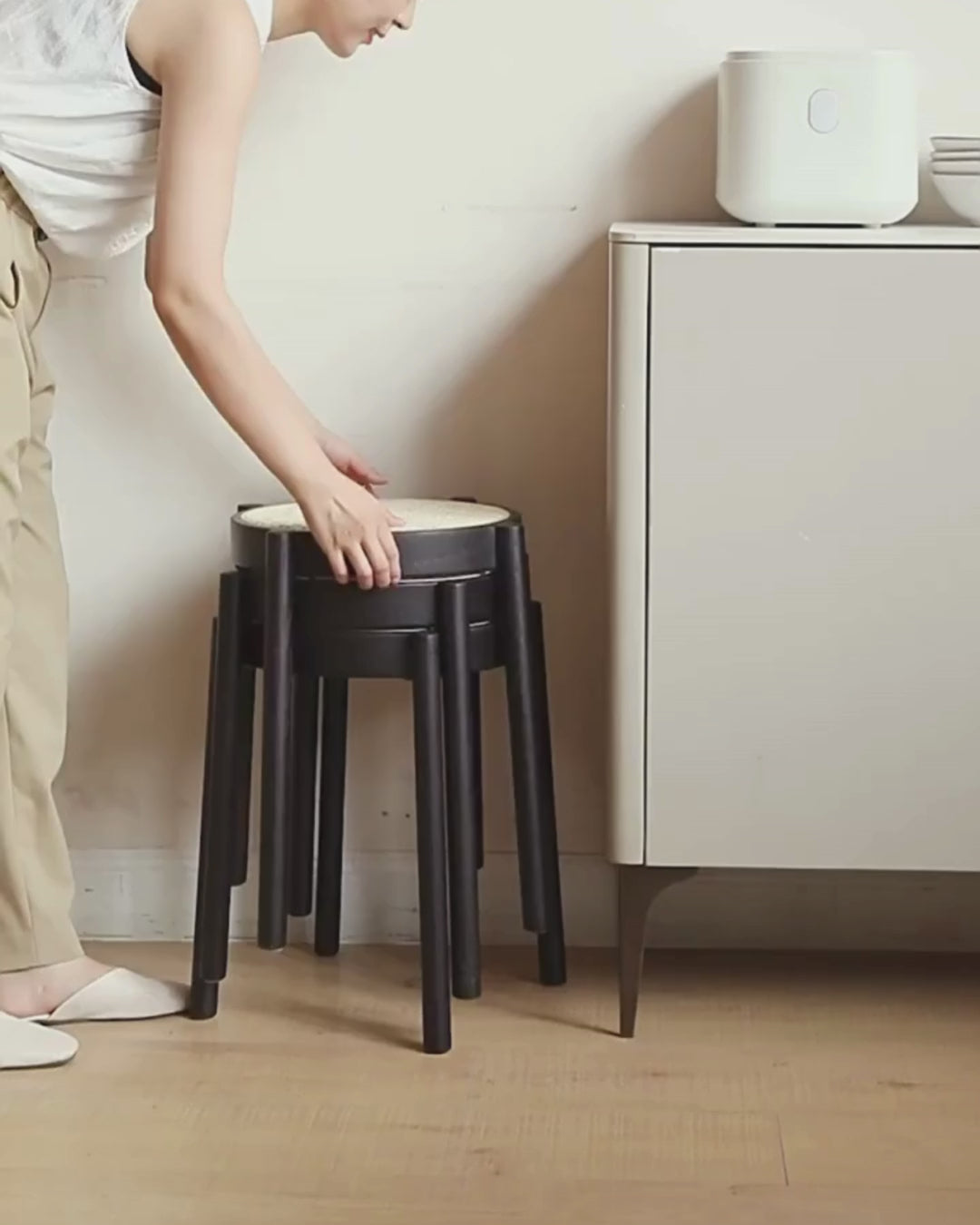 Smoked color + rattan, not dull dark color Rattan seat surface, comfortable and breathable Solid wood frame, strong and durable Stack up, up to 10 Friends get together without fear of no seat Lightweight and easy to carry, you can put it anywhere Living room, bedroom, everywhere you can find TA~