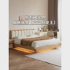 Oak Solid Wood Box Bed — Suspension and Upholstered with Genuine Leather Piano Key Design