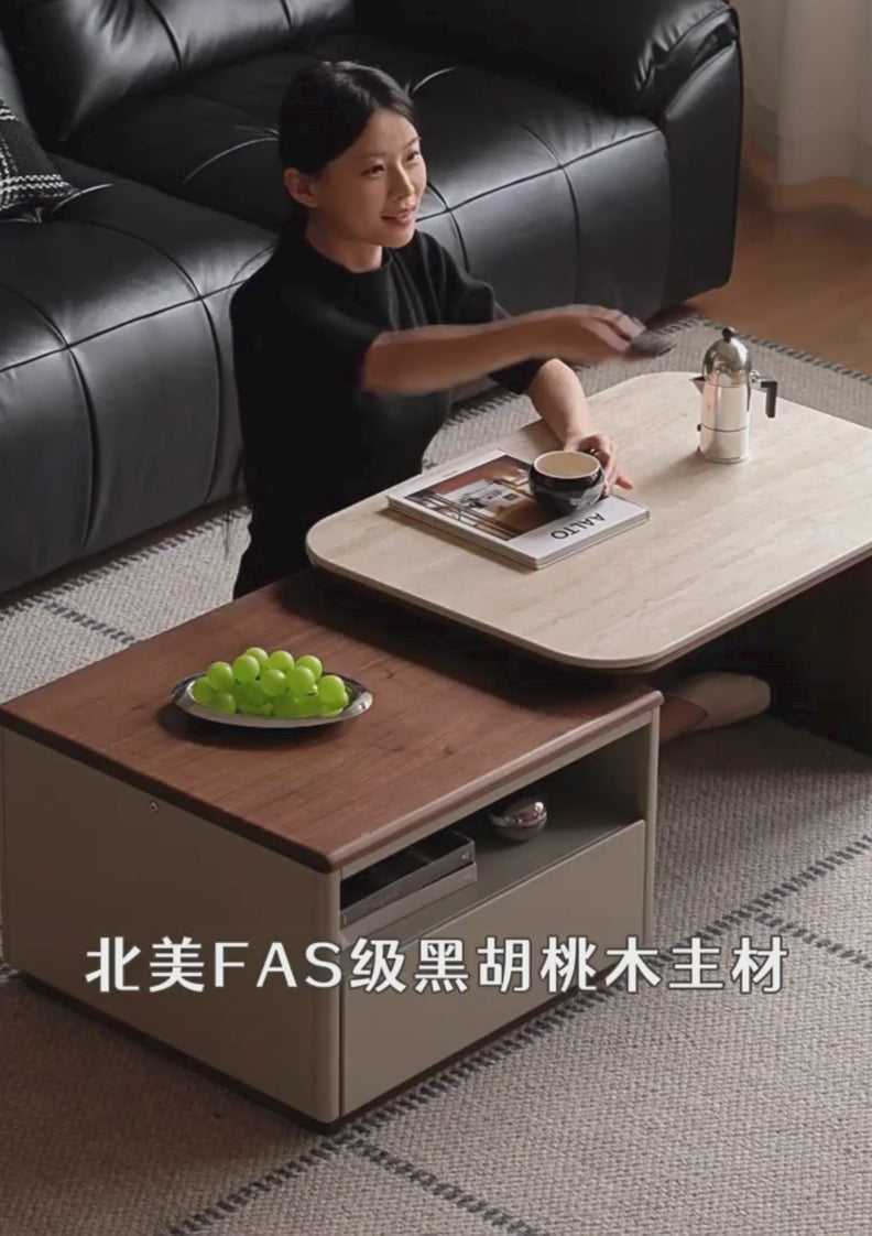 Black Walnut Solid Wood Italian Light Luxury Rock Plate Coffee Table