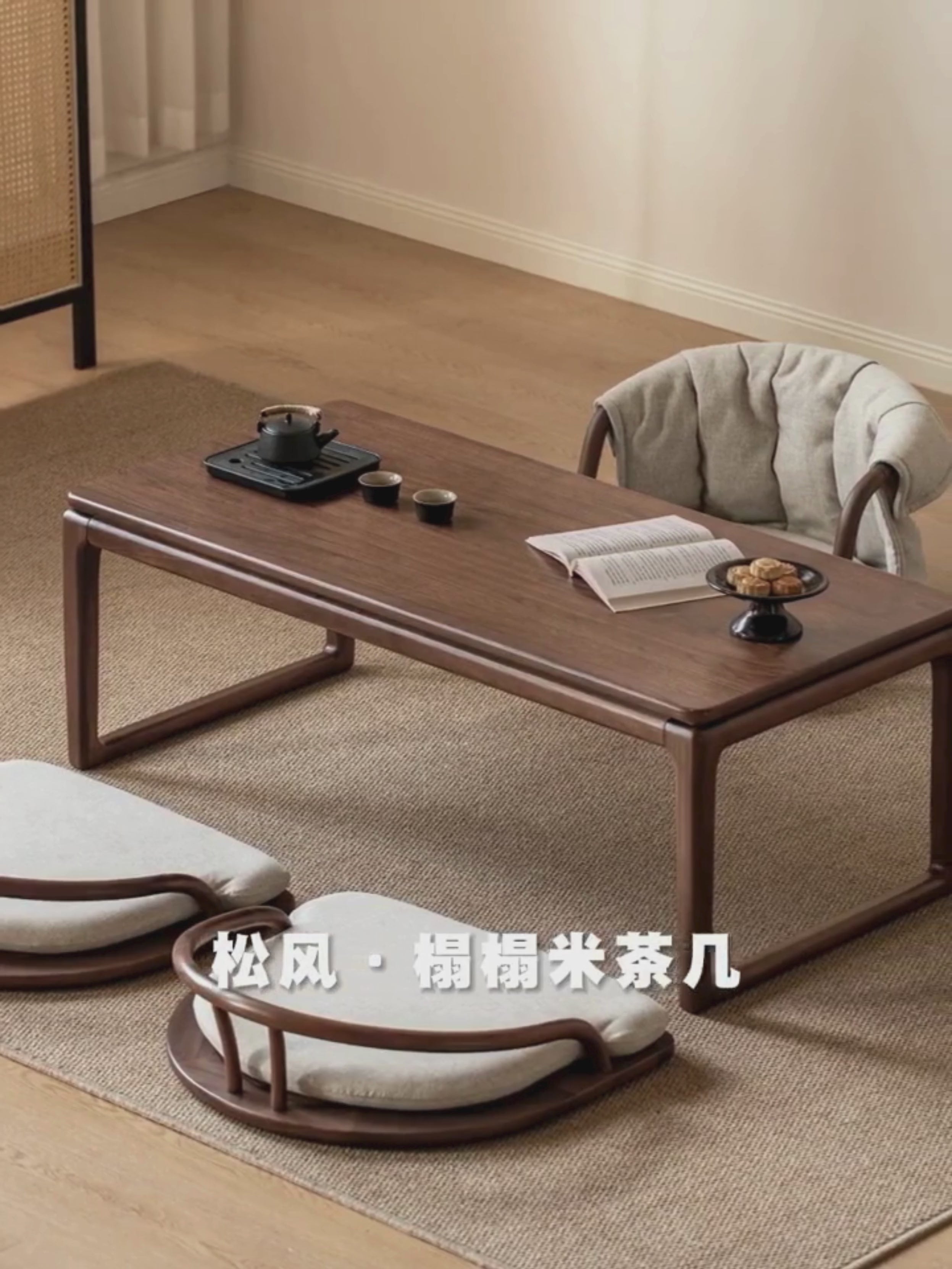 Black Walnut Solid Wood Tatami Small Tea Table.