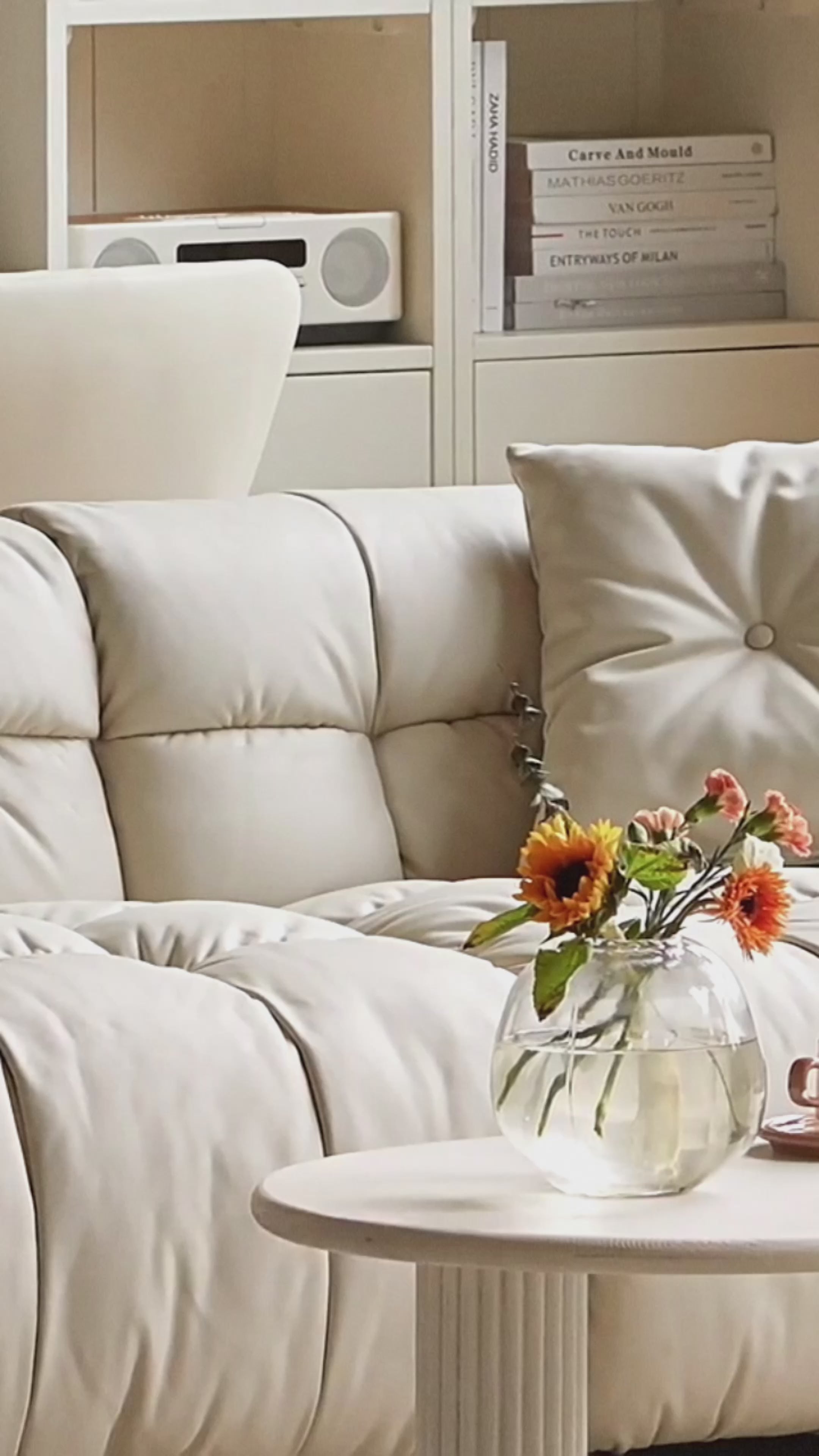 Genuine Leather,Technology Cloth Sofa Cream Wind.