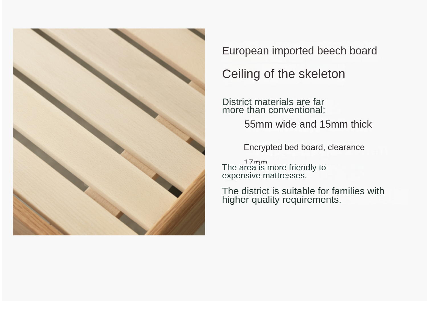 Beech wood is imported from Europe, the wood grain is fine and straight, the texture is uniform, the color is warm, and the hardness is in the upper middle of the wood, it is beautiful and durable.
