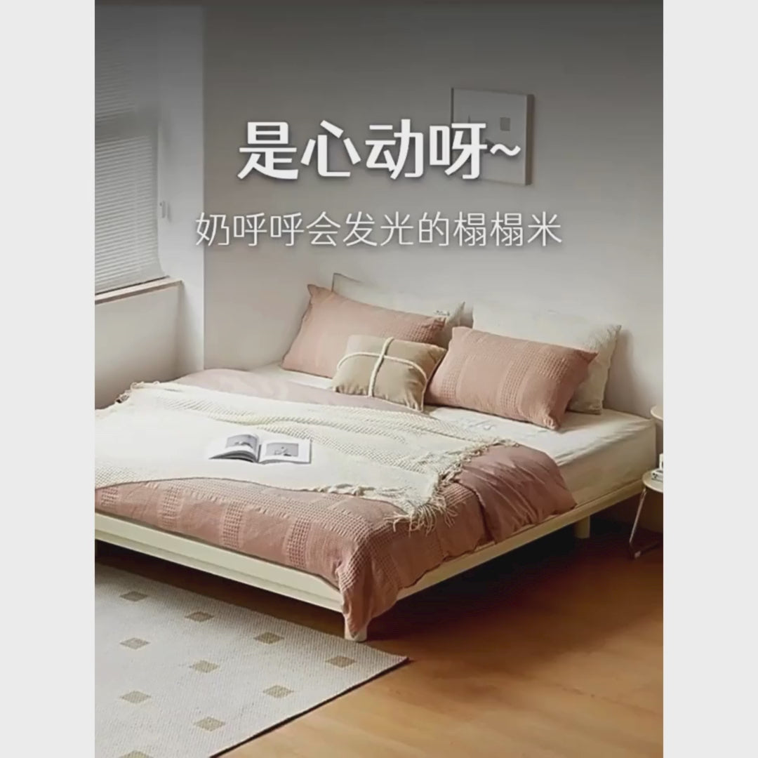 Beech Solid Wood Platform Bed, Headboard-Free Bed, Flush-Edge Floating Bed