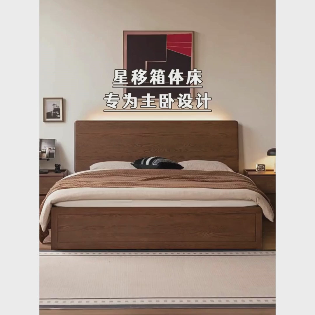 Oak Solid Wood Bed — Modern Minimalist Slab Box Design