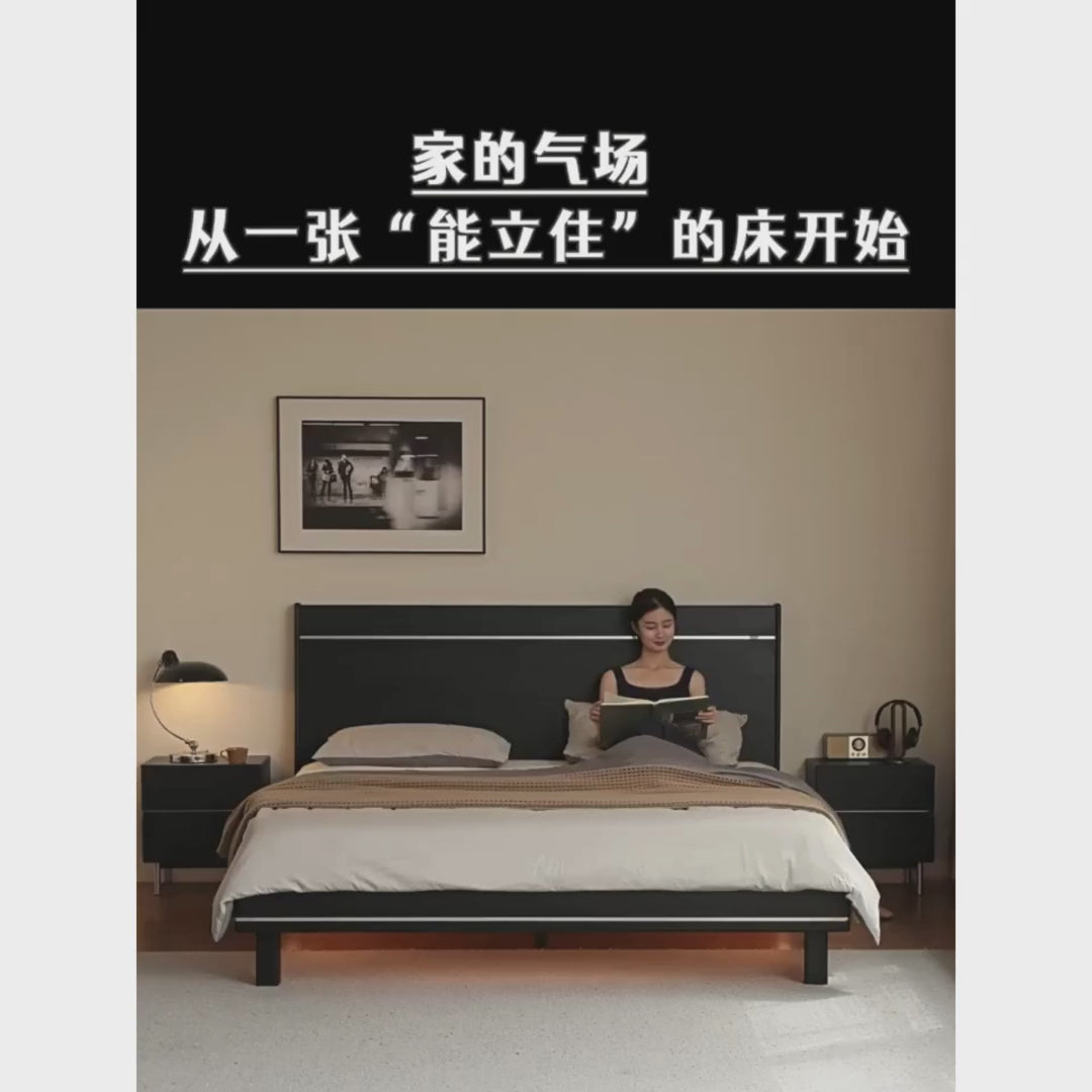 Black Walnut Solid Wood Suspended Modern Simple Bed
