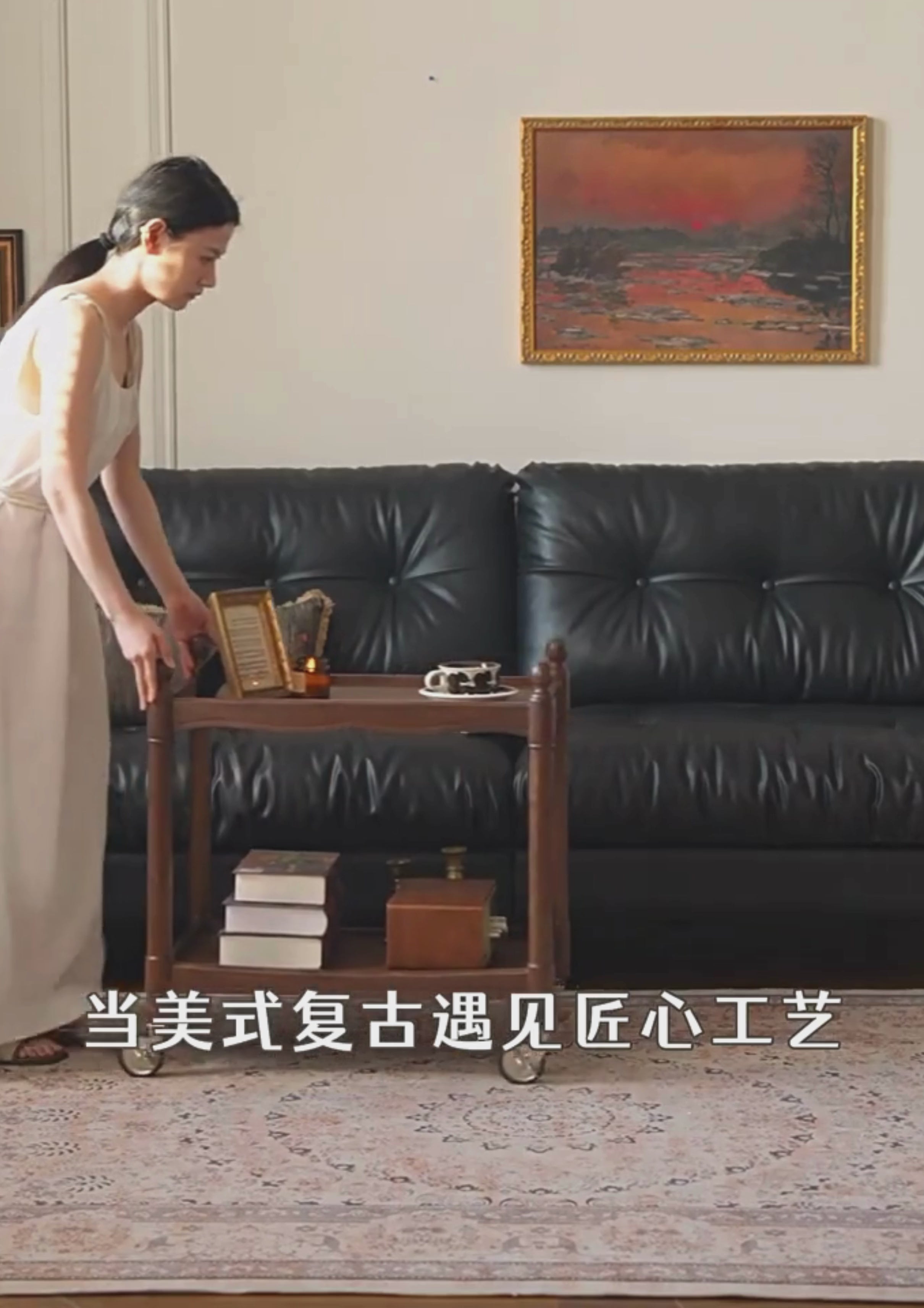 Black Walnut Solid Wood American Retro Mobile Side Table