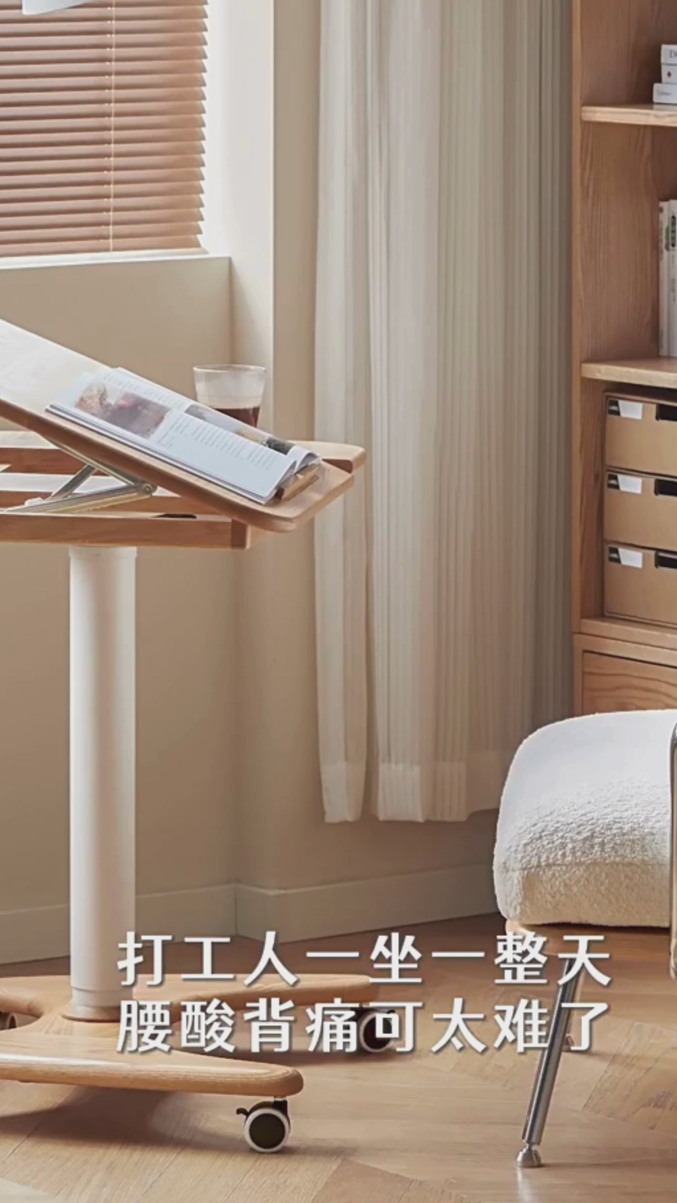 Oak, Ash Solid Wood Standing Desk Lifting Movable Side Table