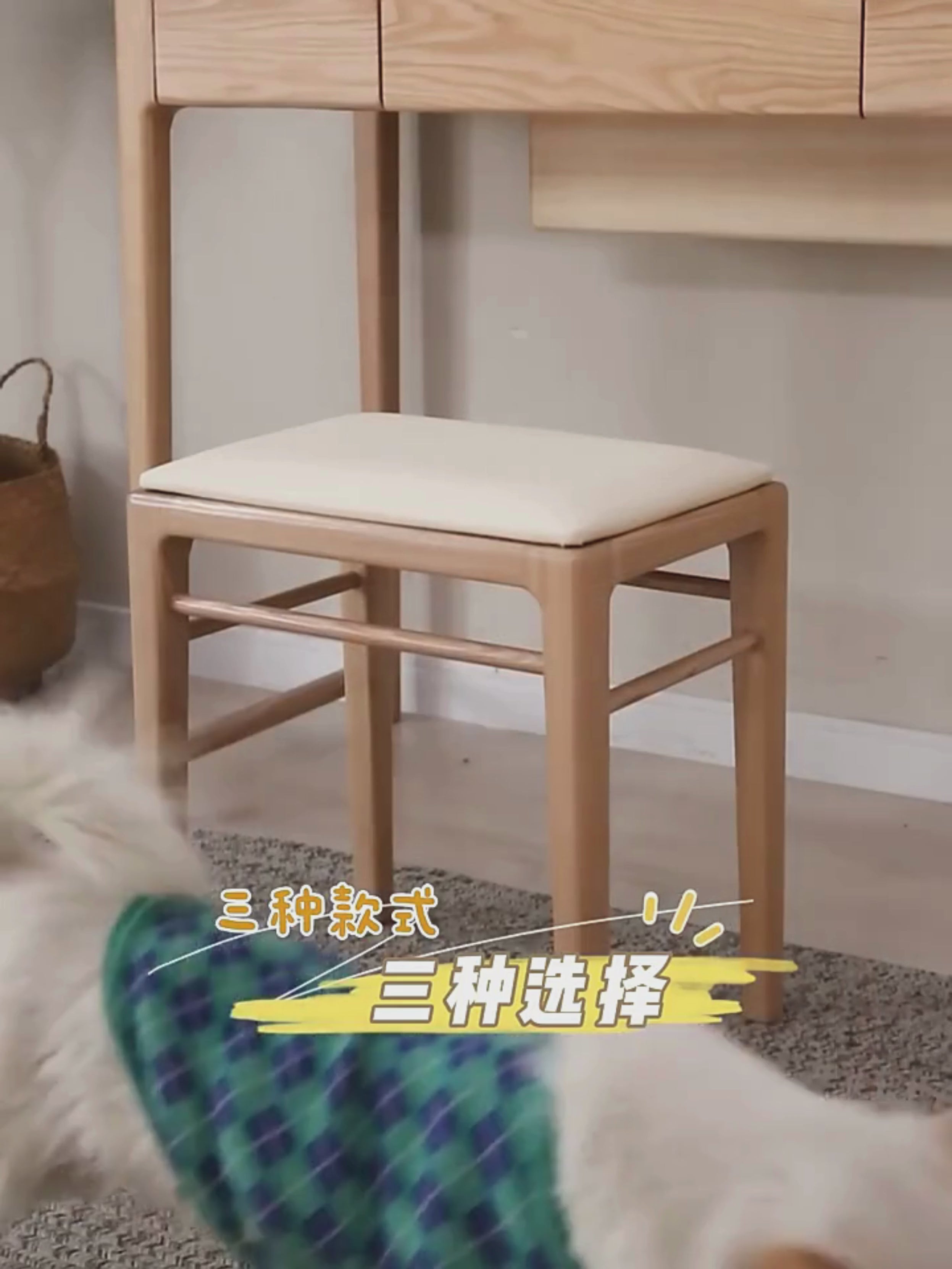 Black Walnut Solid Wood Makeup Stool