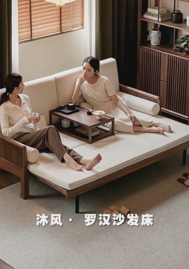 Black Walnut, Oak Solid Wood Foldable Sofa Bed.