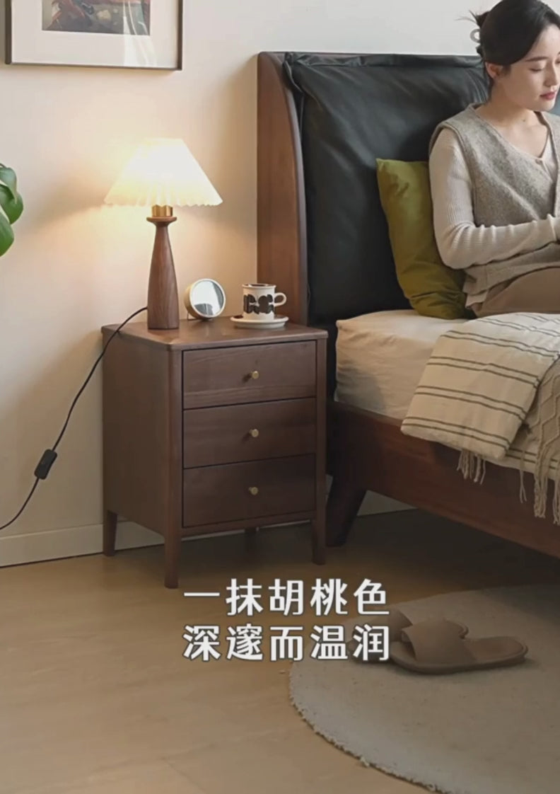 Crafted from 100% pure North American black walnut, this nightstand features rich, natural patterns with minimal knots, ensuring durability and luxury. The paulownia wood components add lightweight strength. Finished with eco-friendly paint and plant-based wax oil, it offers water and oil resistance while maintaining a warm, natural shine. Designed for stability and long-lasting use, it combines expert craftsmanship with sustainable materials. Delivery and installation are available in over 2000 urban areas nationwide.