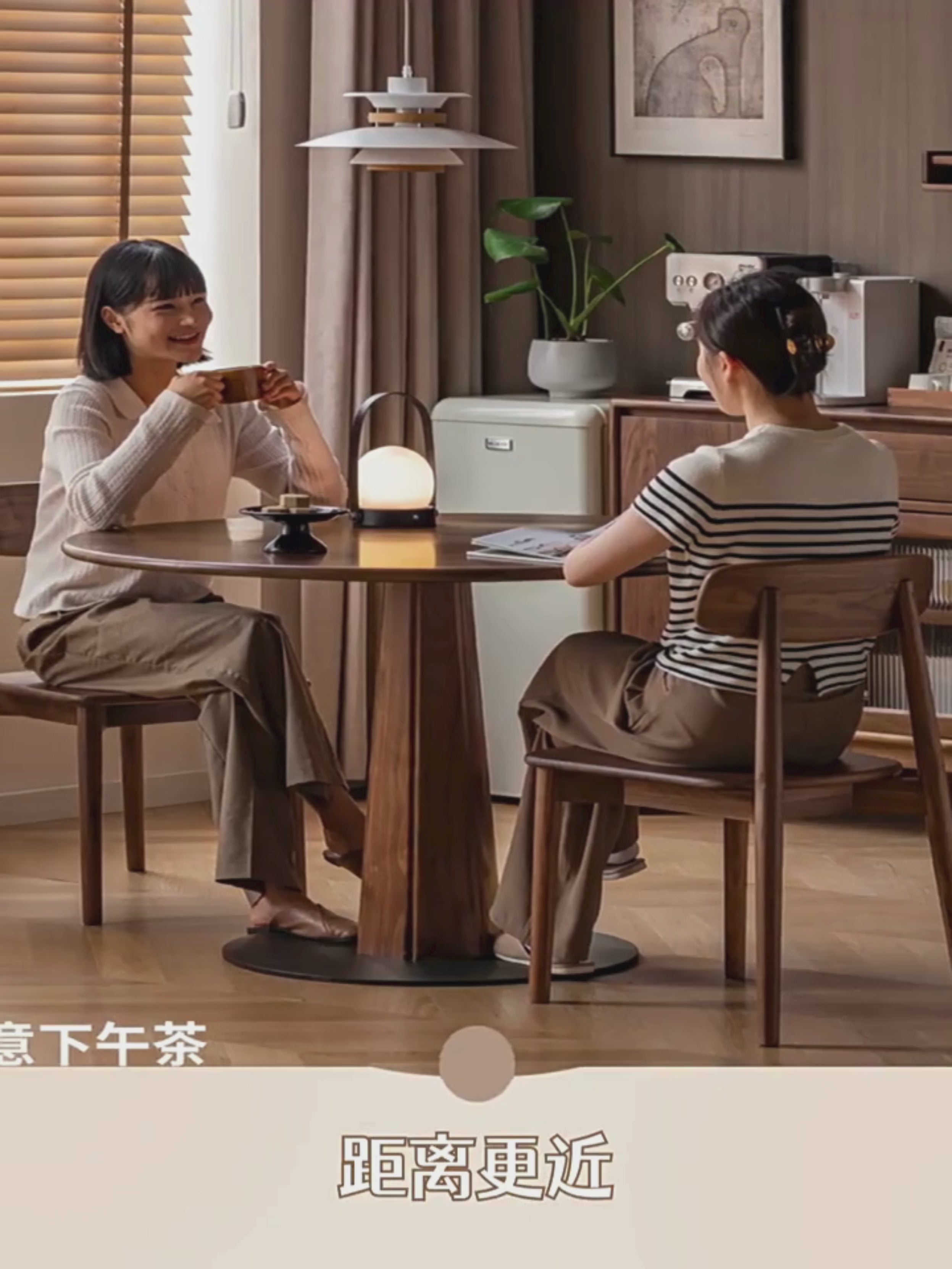 Sandalwood, Black Walnut Solid Wood Round Dining Table