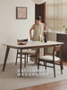 This Black Walnut Solid Wood Vintage Rock Plate Dining Table features a highly detailed natural travertine texture created with digital engraving technology. It offers a realistic touch and visual depth, combining vintage style with durable craftsmanship.