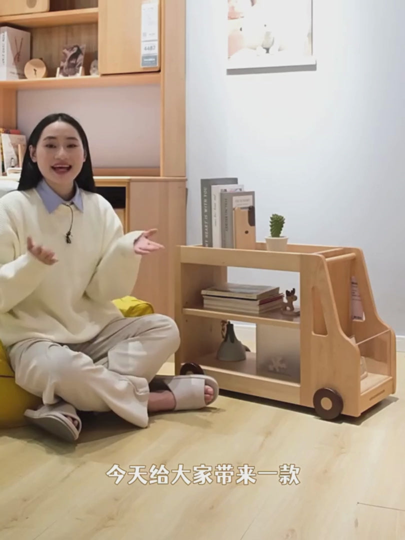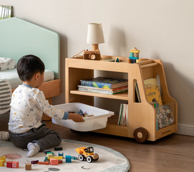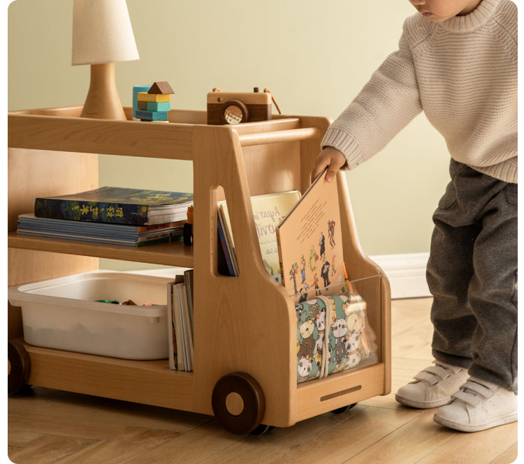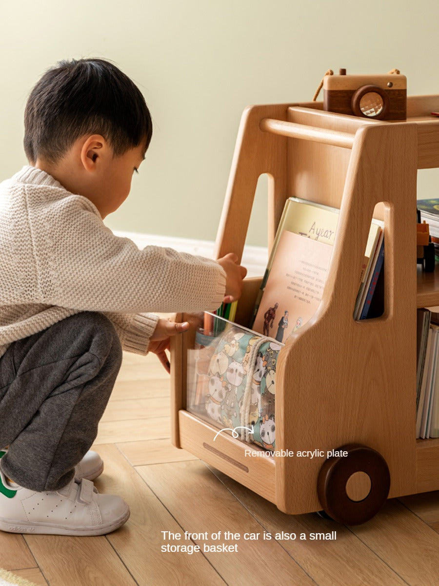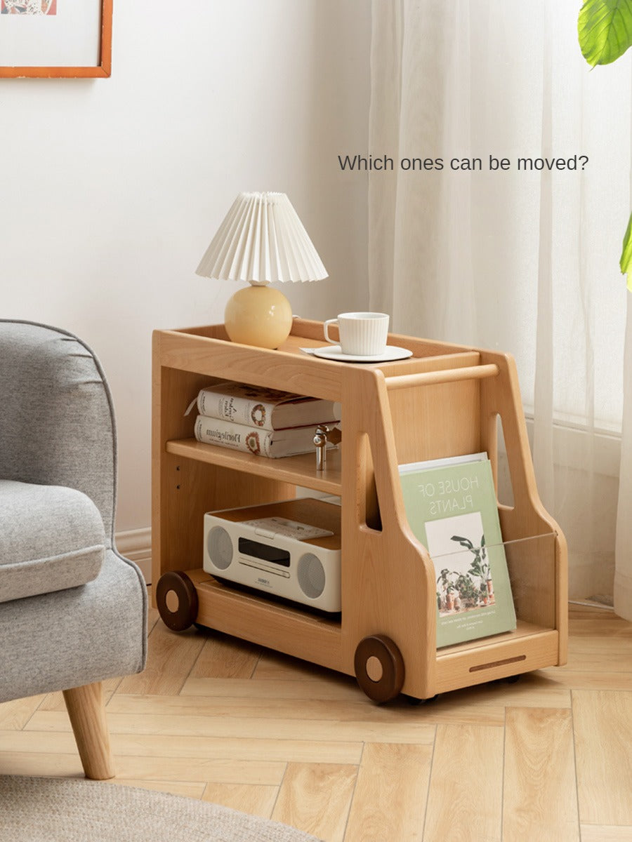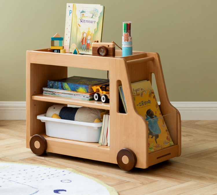 Beech Solid Wood Car Mobile Cabinet Bookshelf Storage