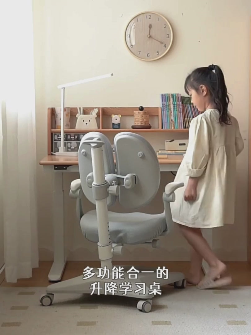 Oak Solid Wood Children's Electric Lifting Tilts Study Desk
