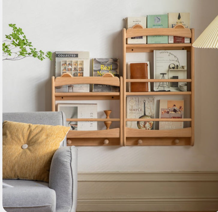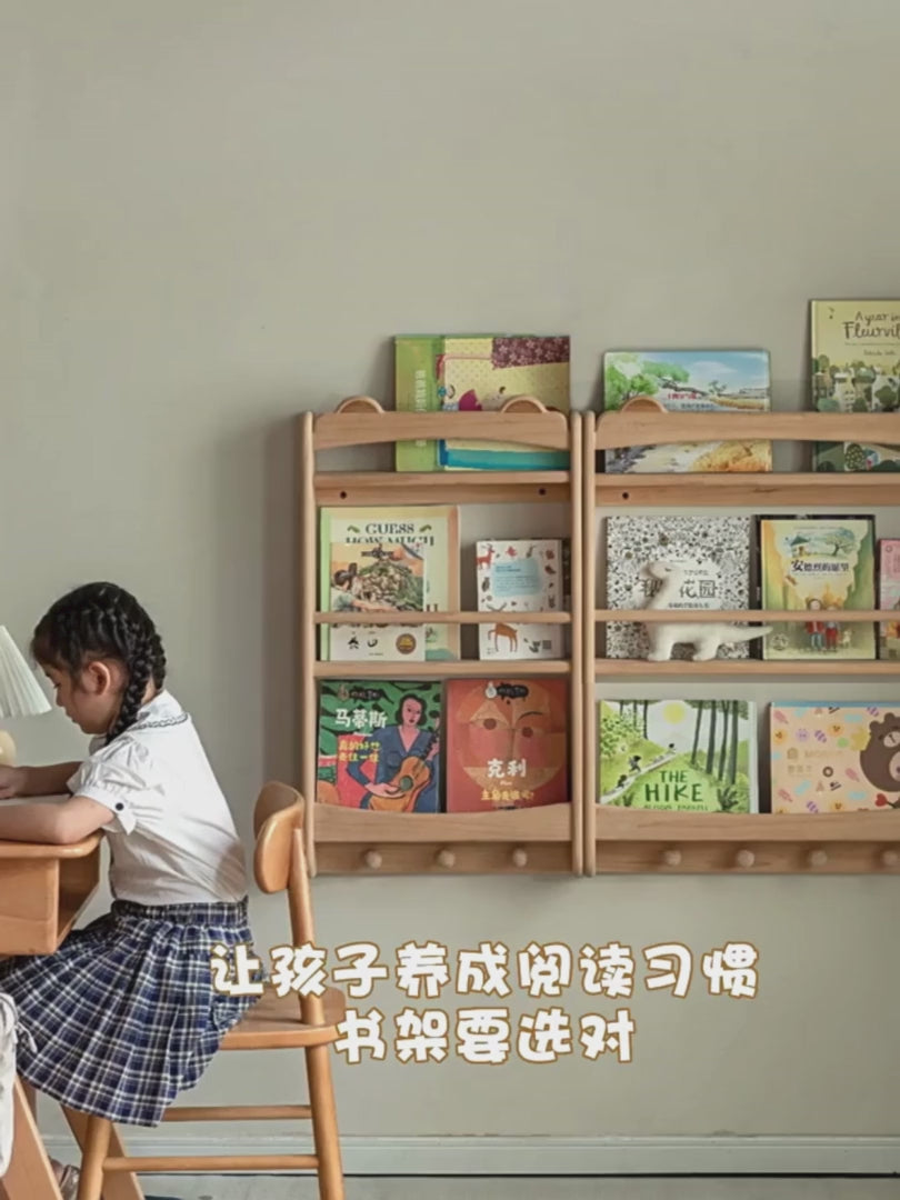 Beech Solid Wood Cute Bear Wall-Mounted Bookshelf Display Shelf