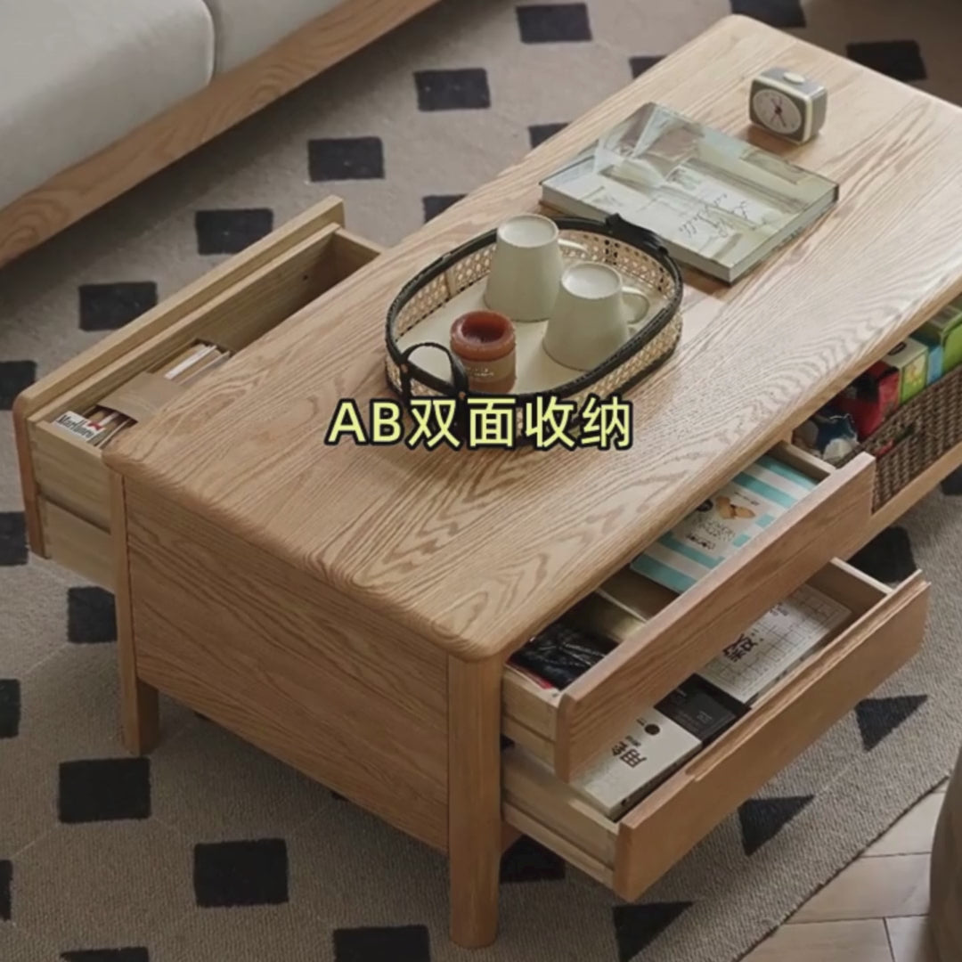 Oak, Solid Rubberwood Coffee Table Three Drawers