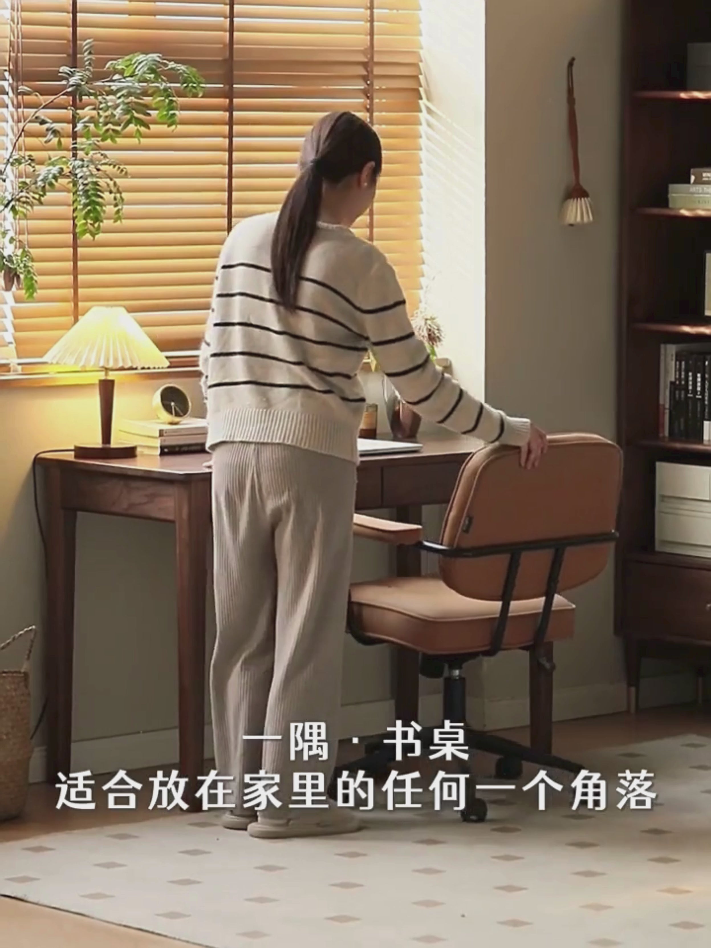 Solid wood desk with drawer window desk home small apartment writing desk black walnut table.