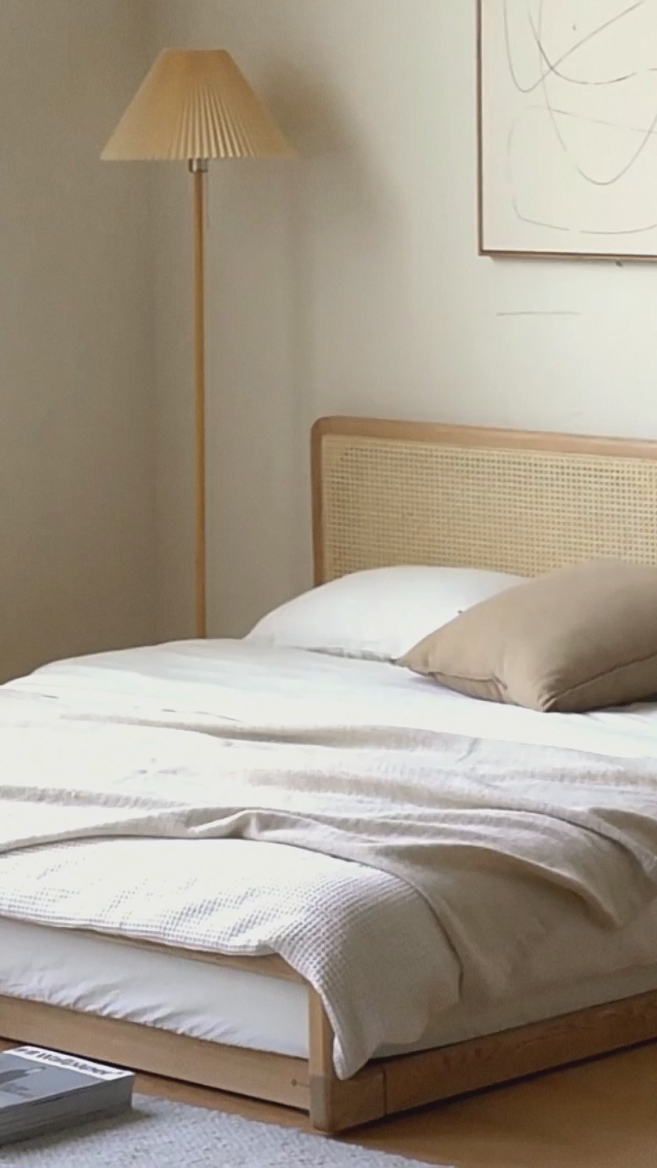 Ash Solid Wood Floor Bed Rattan