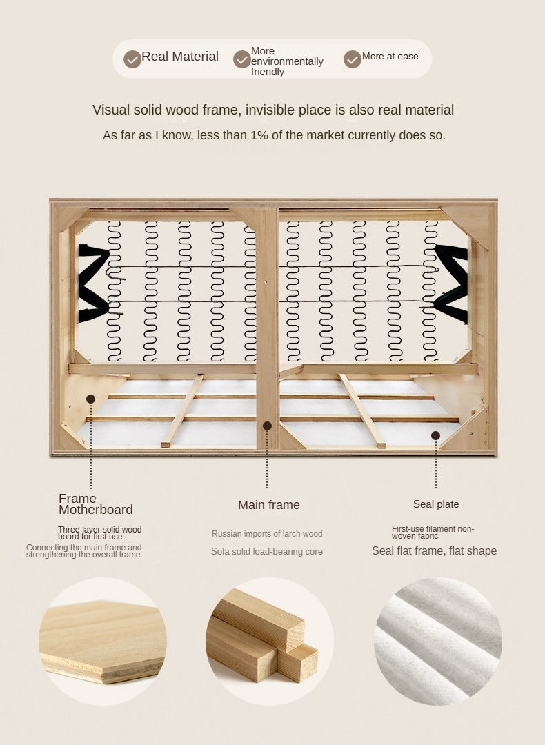 1.The internal frame of the sofa: pine + three-layer solid wood + serpentine spring + paper-wrapped steel wire.