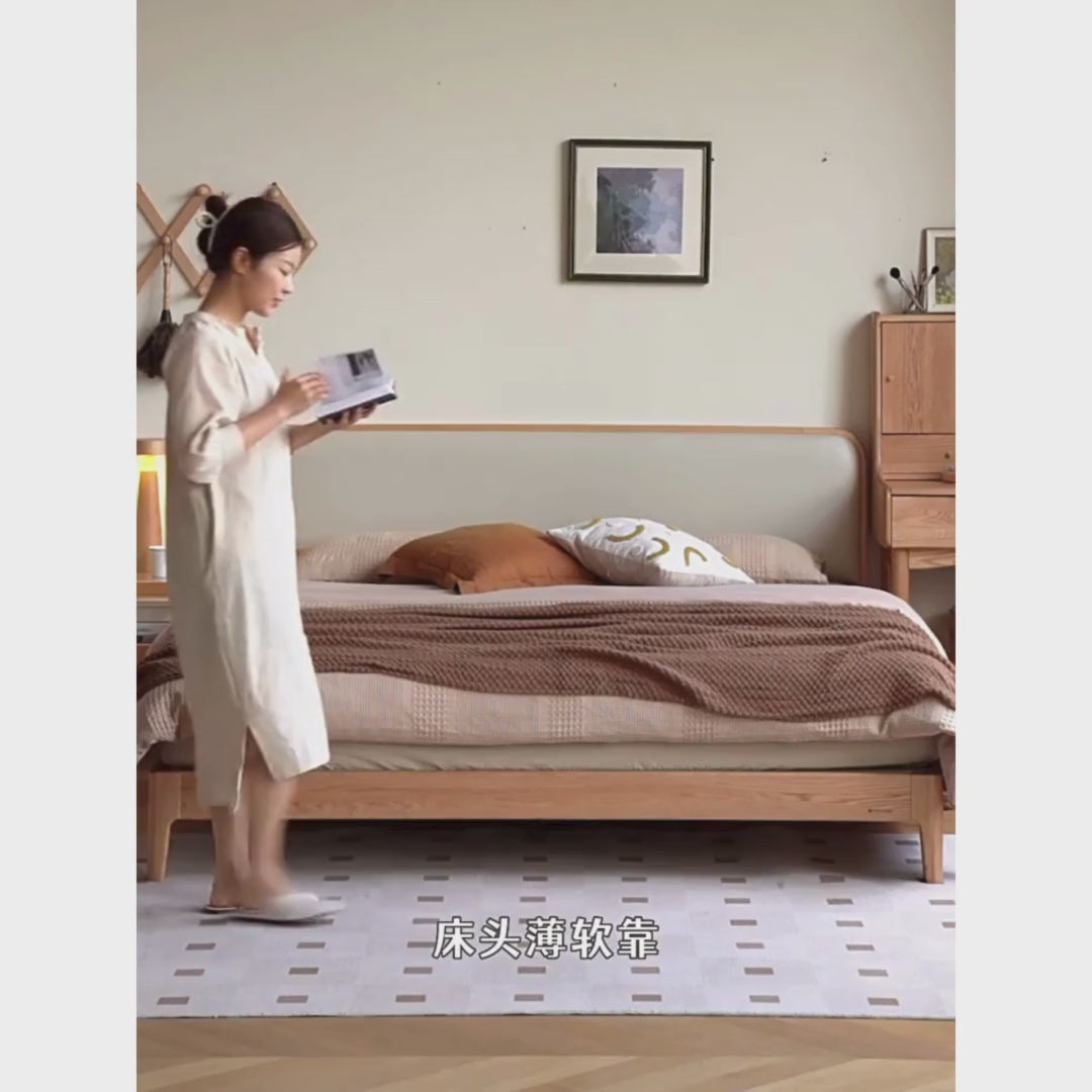 Oak, Rubber wood Solid Wood Bed Technology Fabric,Suede