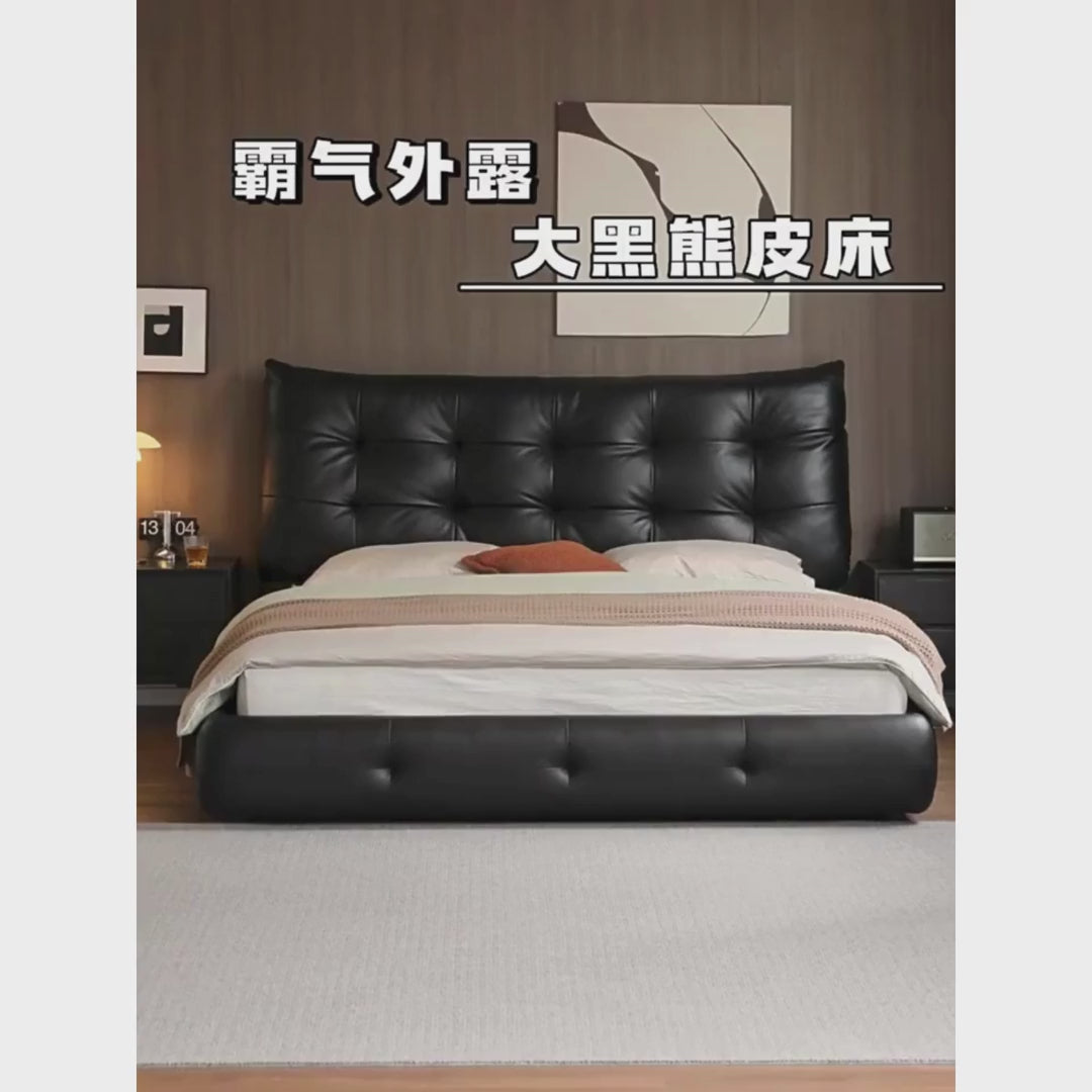 Genuine Leather Big Floor Bed Light Luxury
