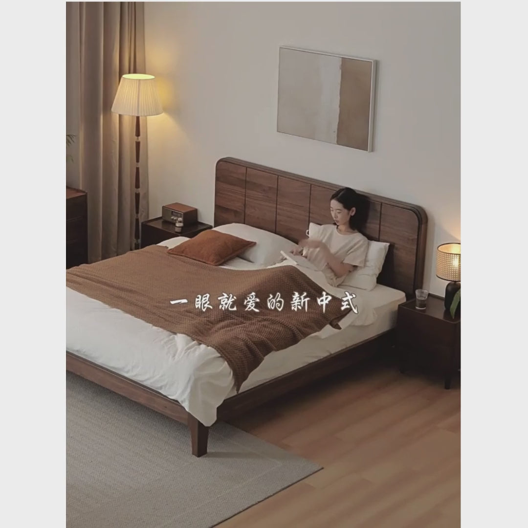 Black Walnut Solid Wood Bed New Chinese Retro Screen Large Board Bed Black Walnut Big Bed Bedroom Home Double Bed