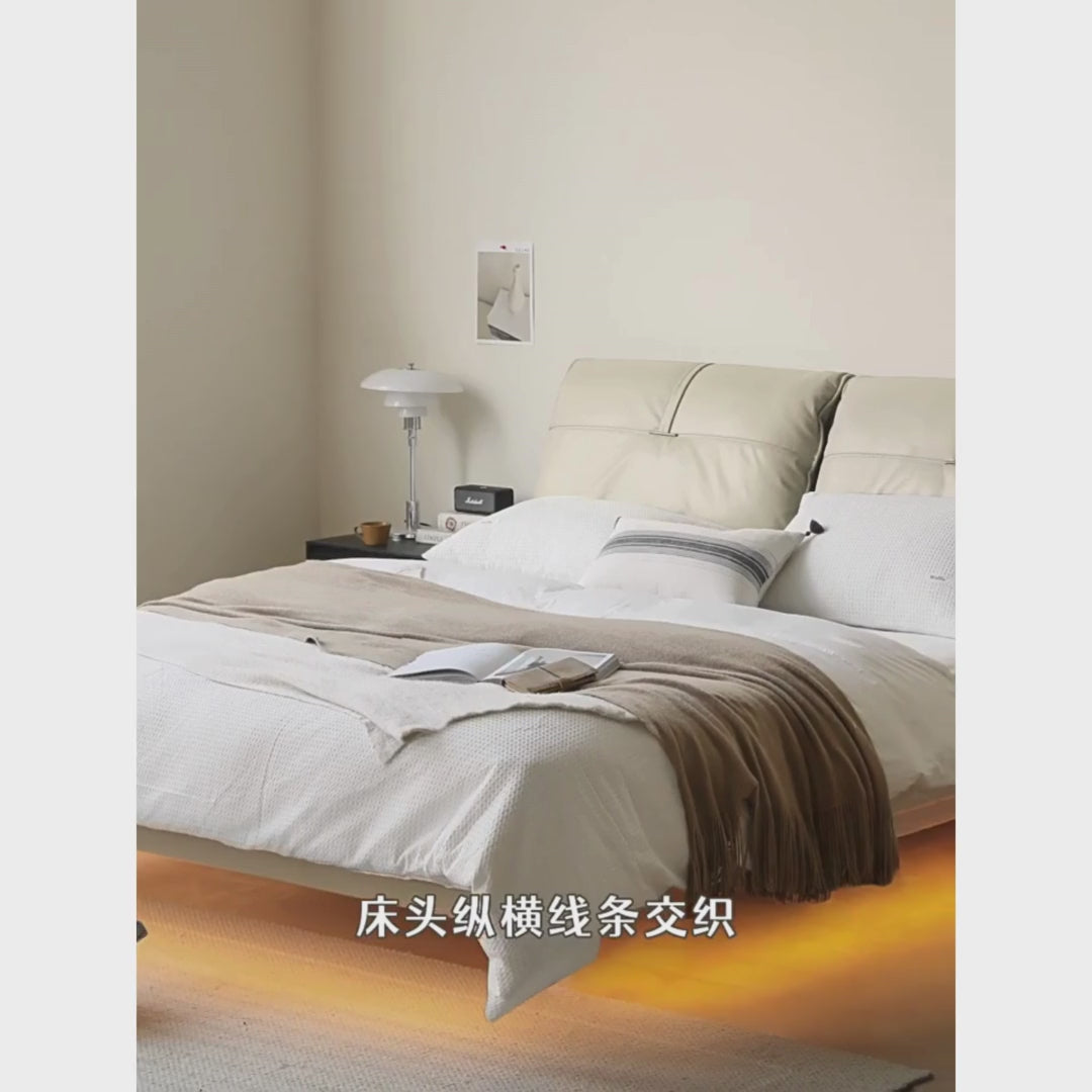 First Layer Cowhide Upholstered Suspension Down Bed Cream Style Elephant Ear Bed