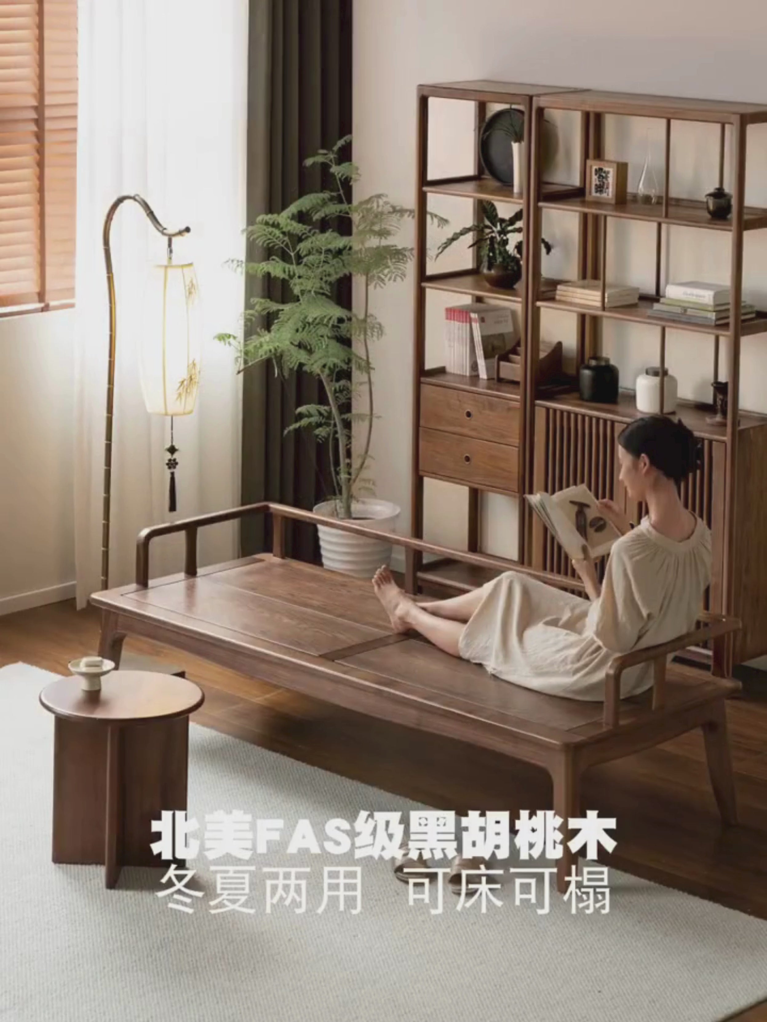North American Black walnut solid wood Luohan bed new Chinese style winter and summer dual-use sofa North American black walnut sofa bed Luohan couch