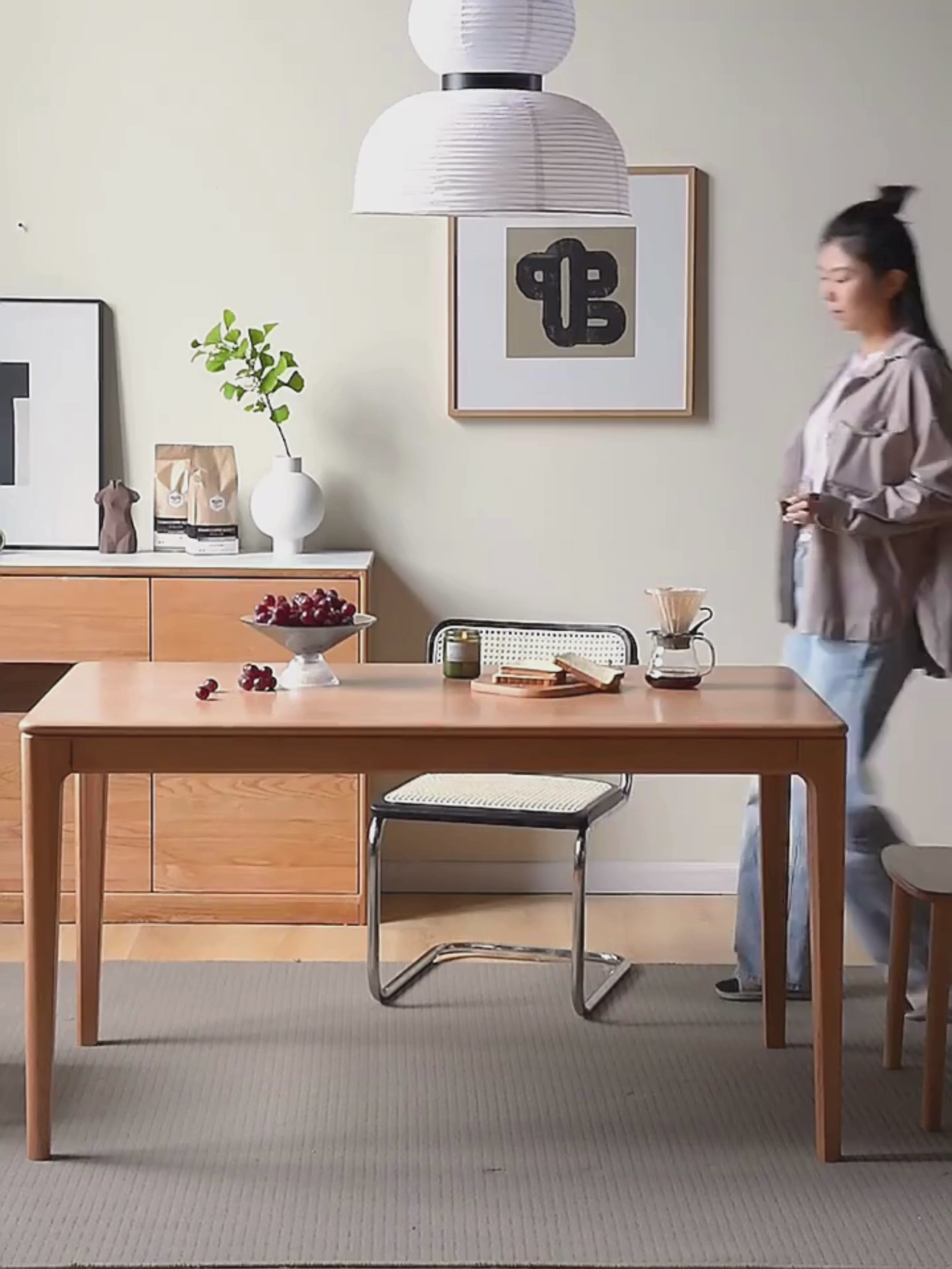 A classic and simple pure oak 1 dining table with a classic and durable shape, clean and smooth lines, made of all oak 1, without a trace of auxiliary materials, feel the warmth of solid wood and the warmth of fine wood to accompany you every meal.