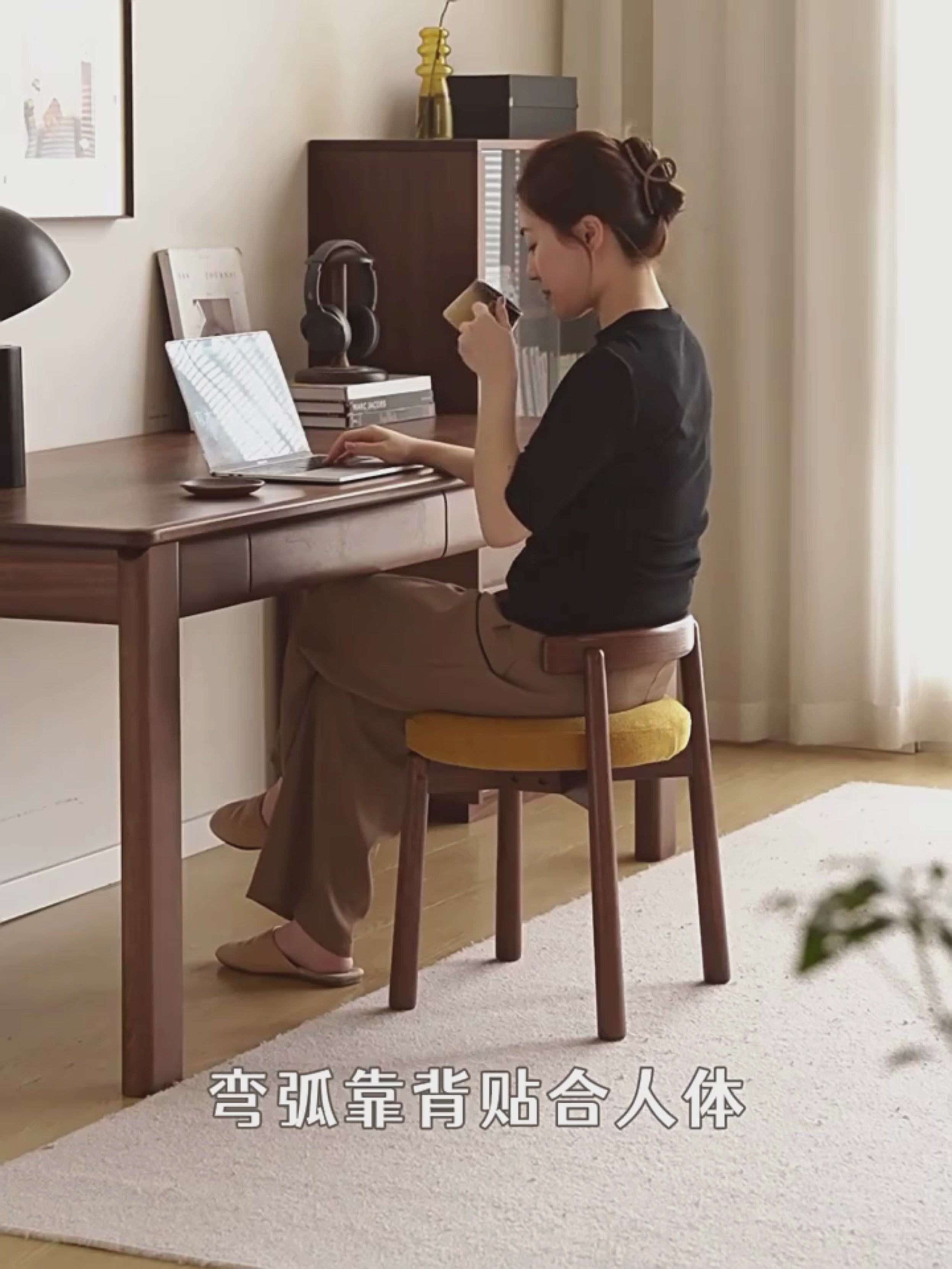 Black Walnut, Oak, Solid Wood, Solid Rubberwood Rotating Modern Soft Makeup Stool