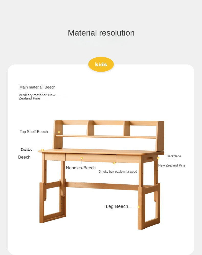 Beech wood is imported from Europe, the wood grain is fine and straight, the texture is uniform, the color is warm, and the hardness is in the upper middle of the wood, it is beautiful and durable.