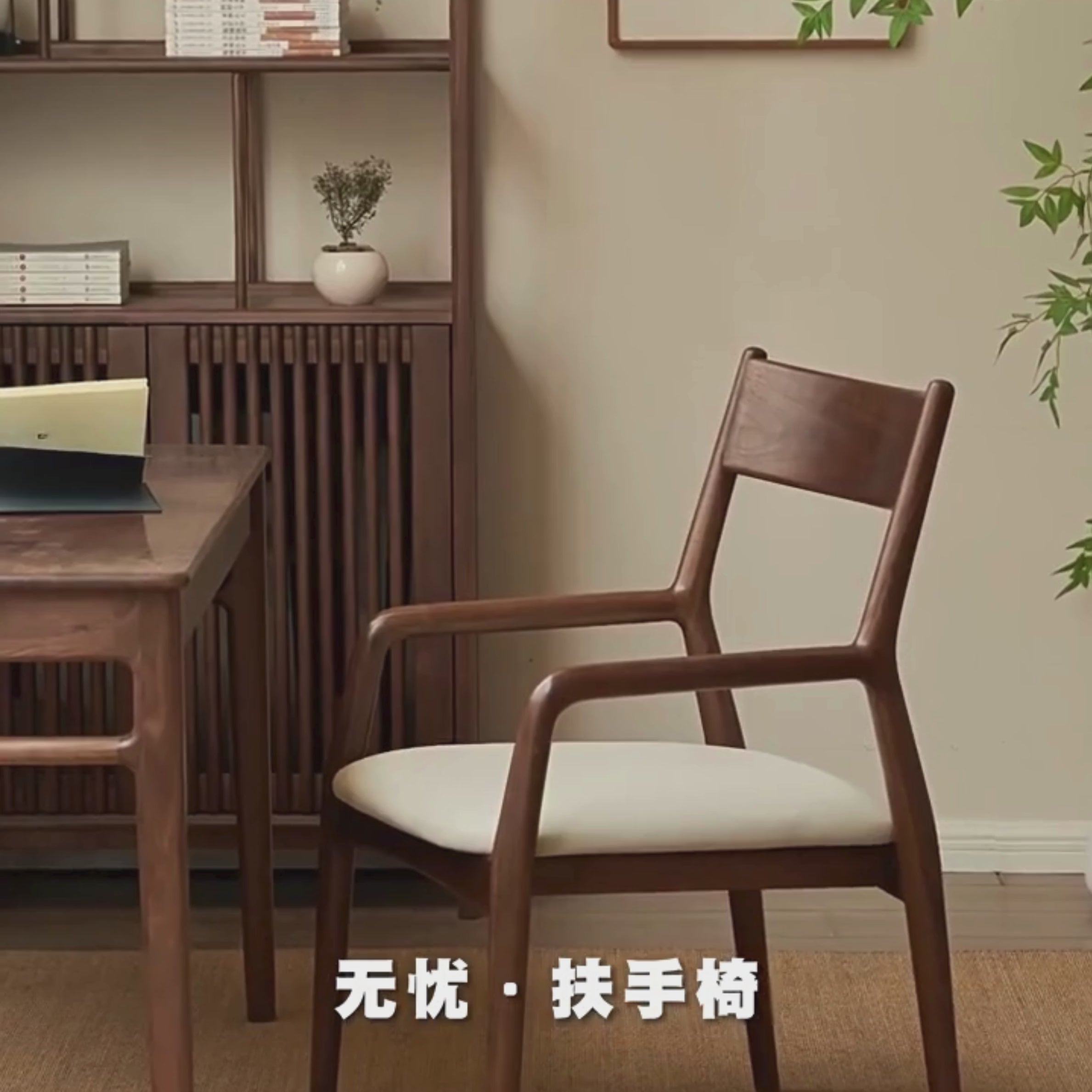 Black Walnut, Oak Solid Wood Retro Soft Pack Dining Chair