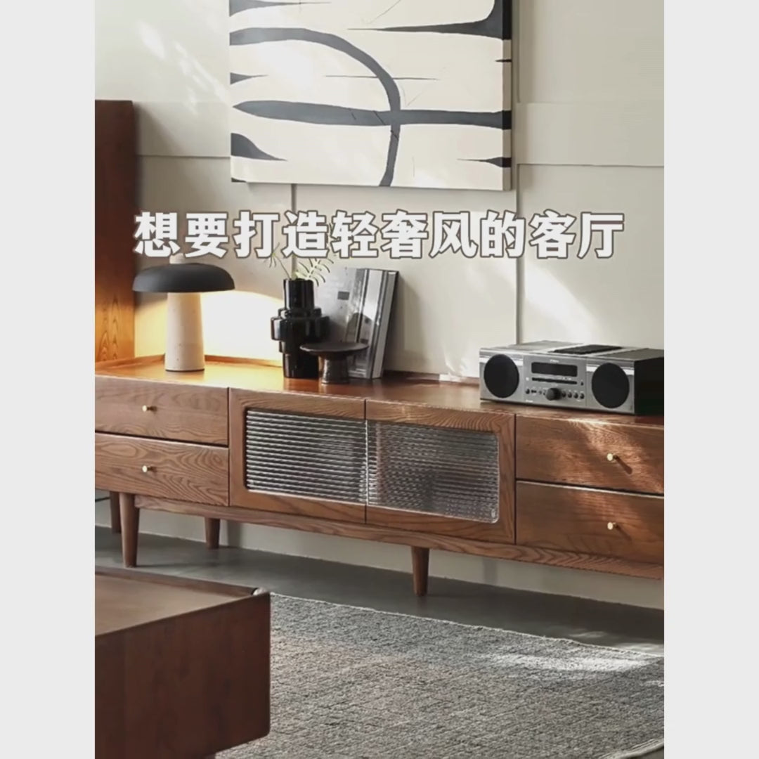 Modern and light luxury appearance, walnut ash wood and Changhong glass are combined with brass embellishments to make it more fashionable.
