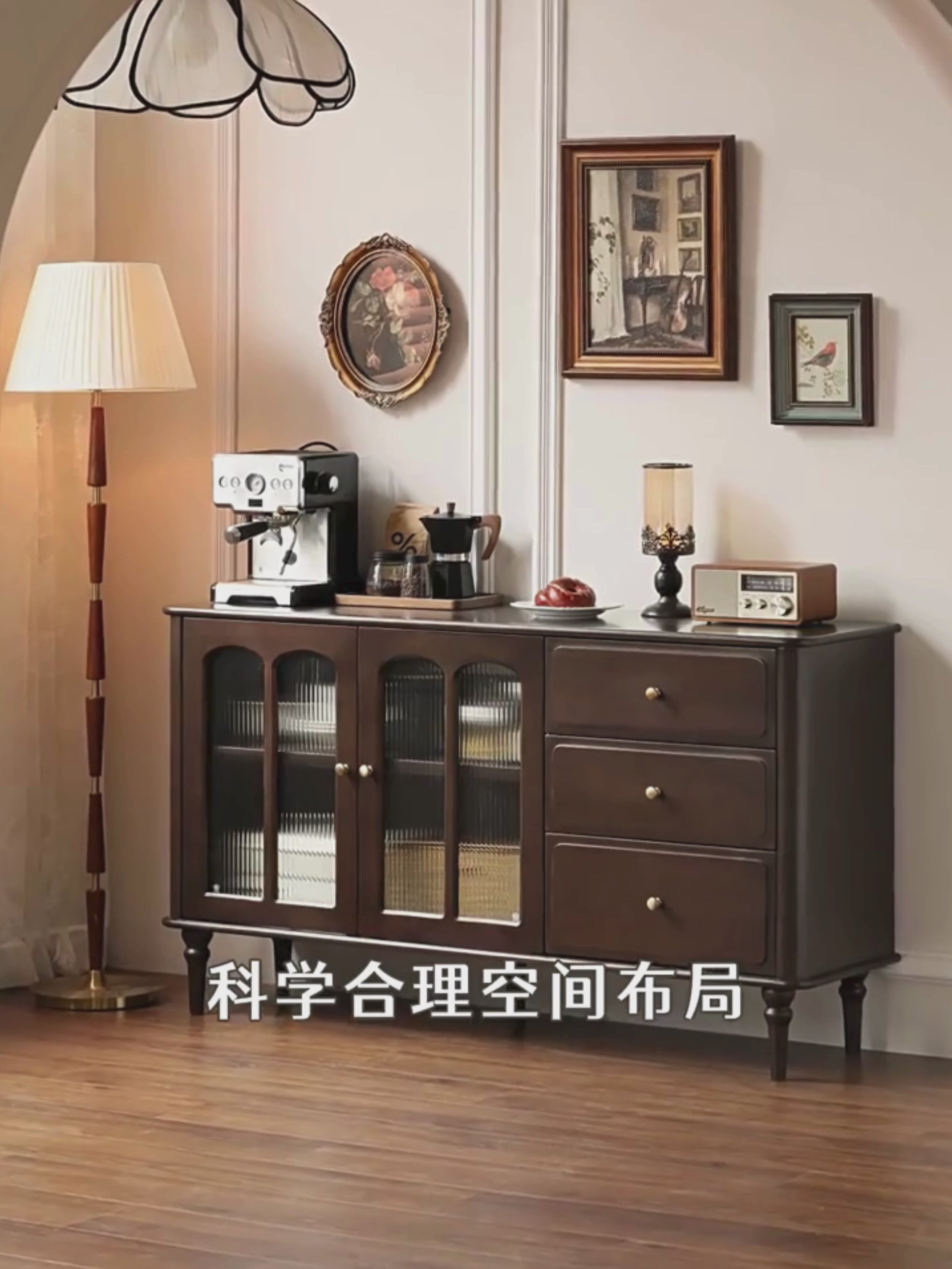 Every line exudes retro romance; every piece of artistic texture is engraved with the mark of time; American nostalgic design, clear and concise lines, make distant classics become reality within reach, Jenny, sideboard storage life, storage aesthetics.