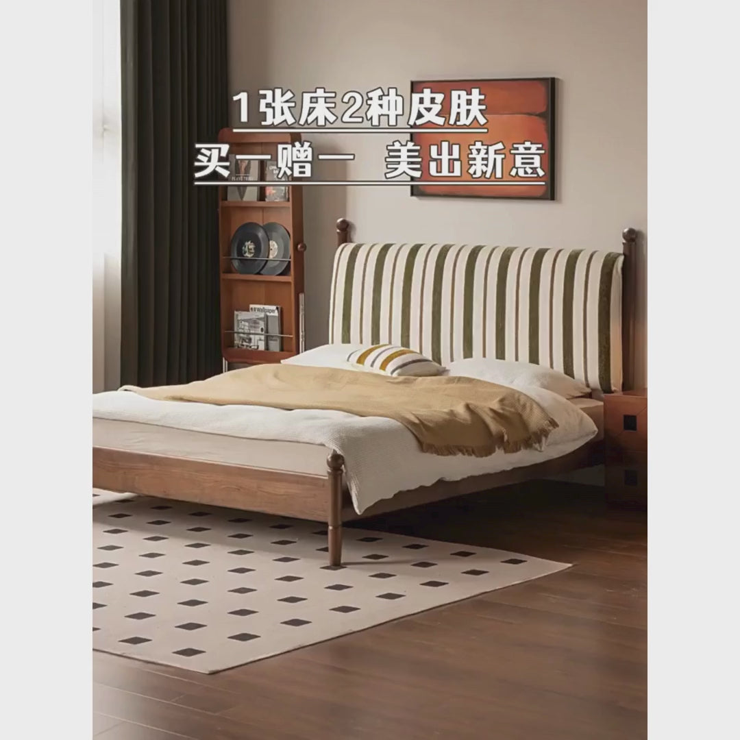 Black Walnut Solid Wood Striped Upholstered Panel Bed