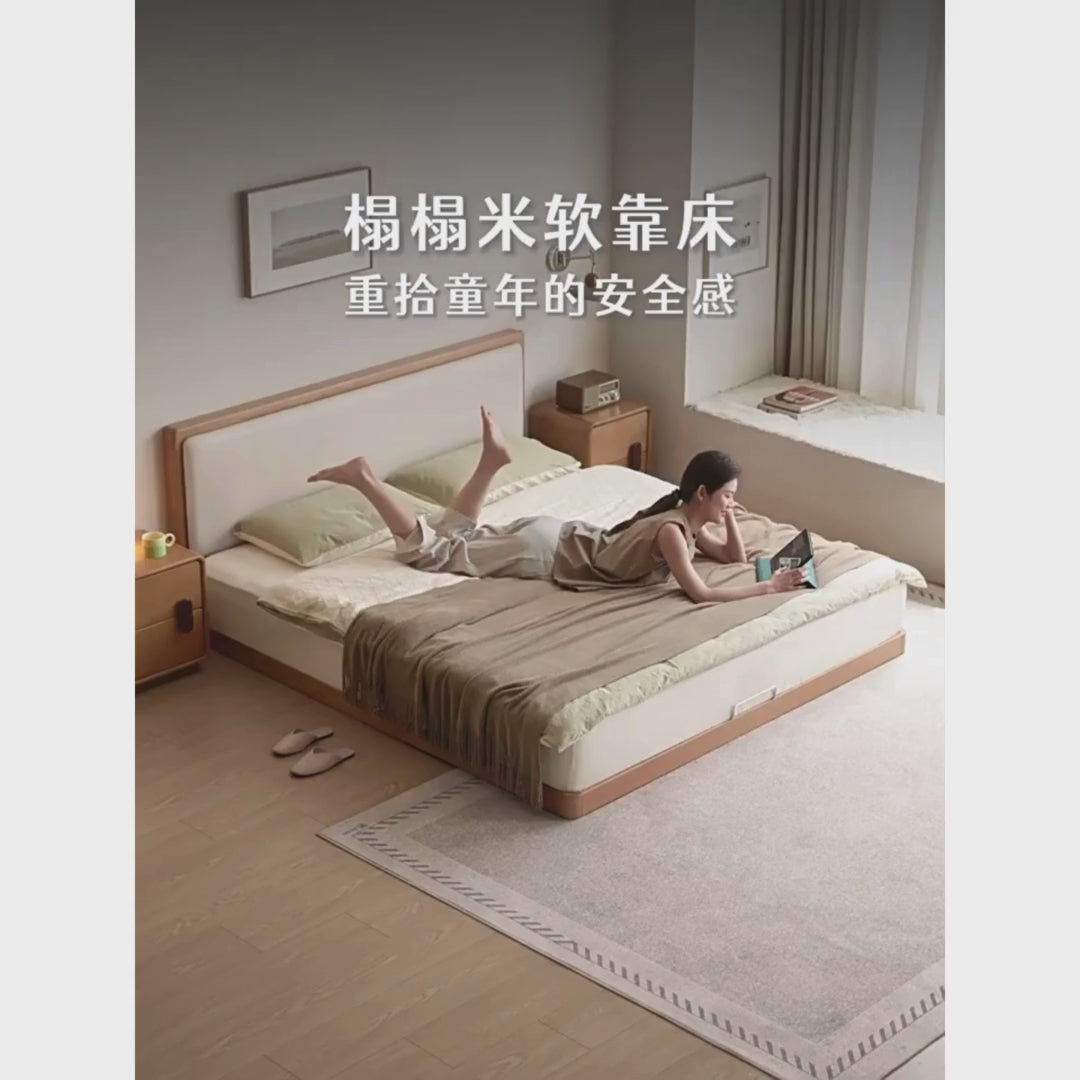 Beech Solid Wood Bed – Platform Bed with Soft Upholstery