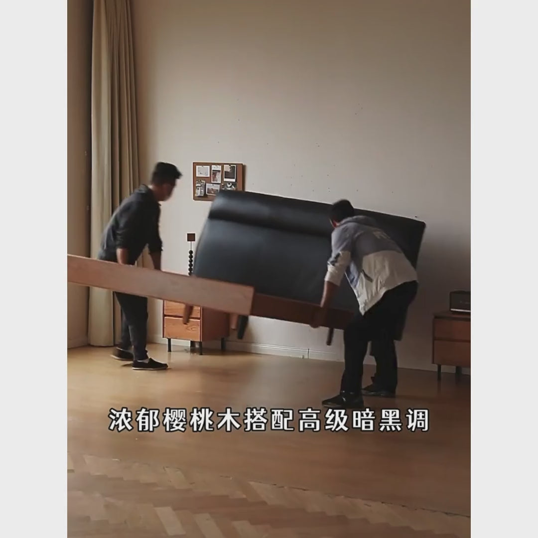 Cherry Solid Wood Suspended Leather Soft Bed Light Luxury.