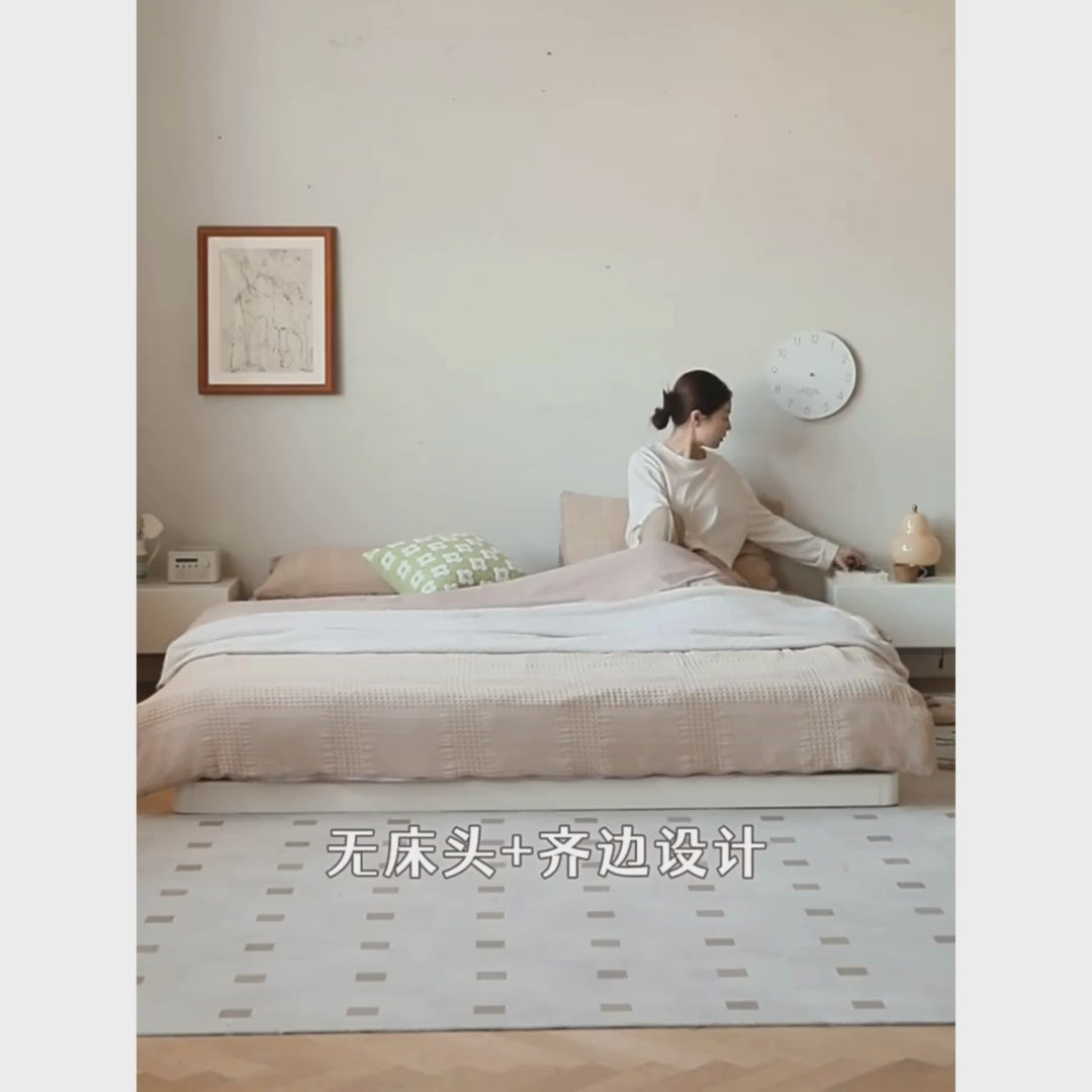 Birch solid wood platform bed, headboard-free bed floor bed cream style