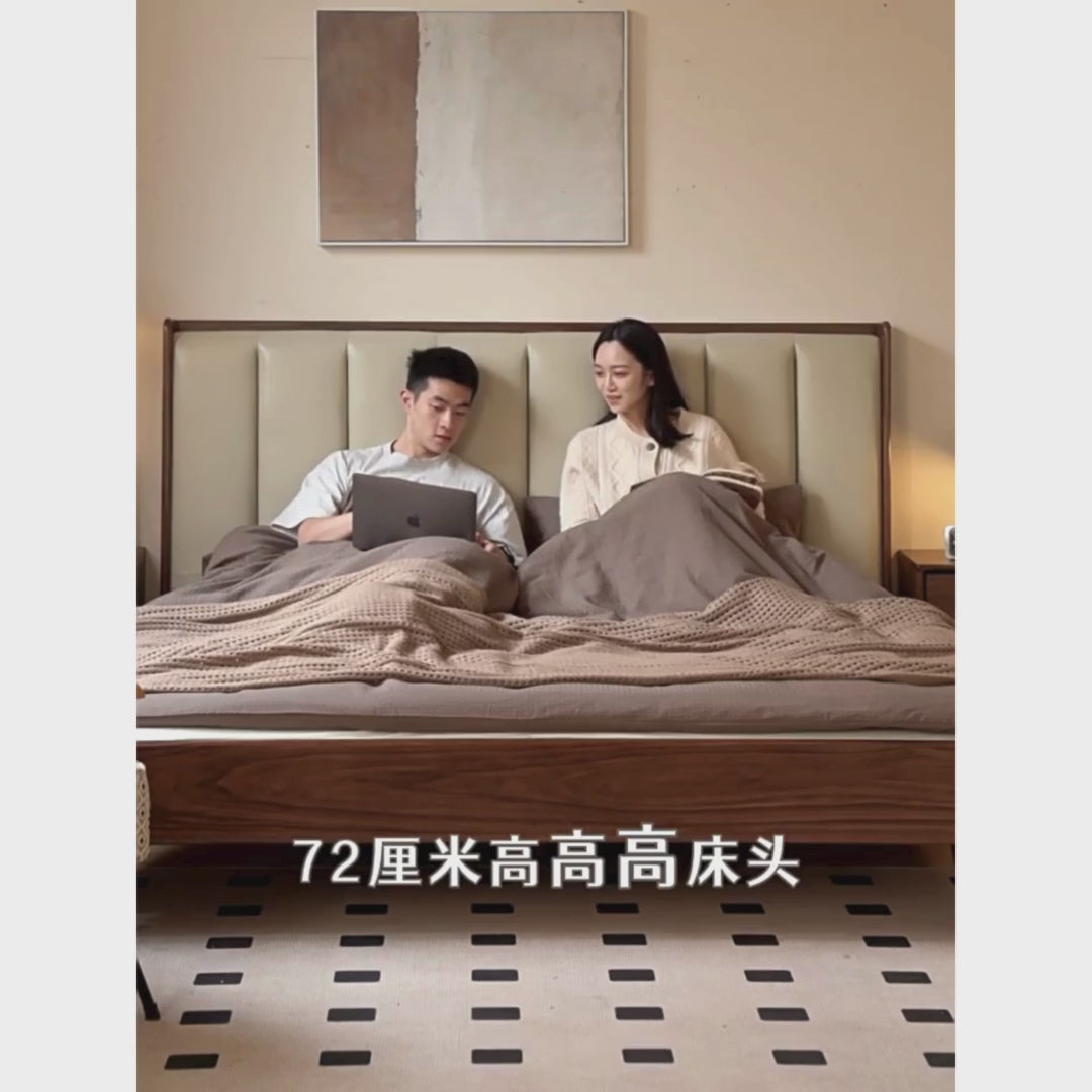 Black Walnut Solid Wood leather Simple High Soft Back Bed