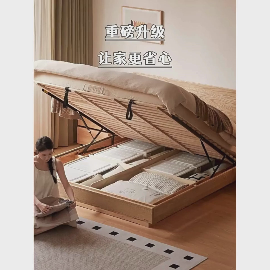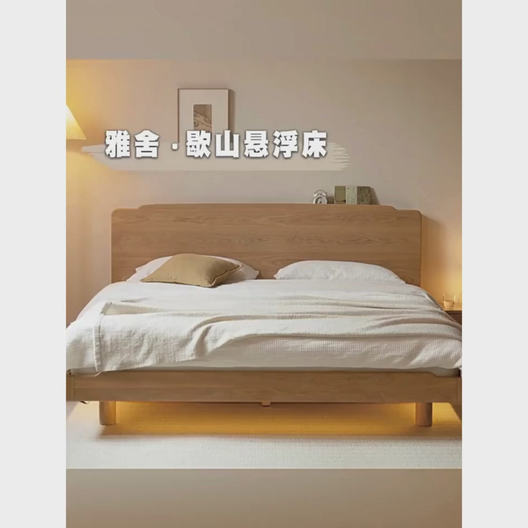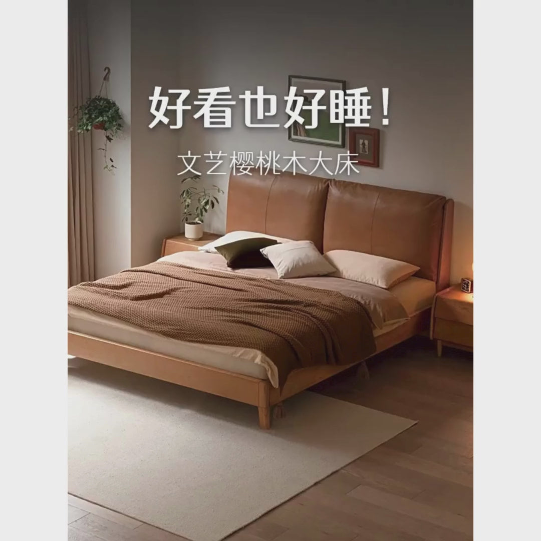 Oak, Ash Solid Wood Genuine Leather Soft Bed