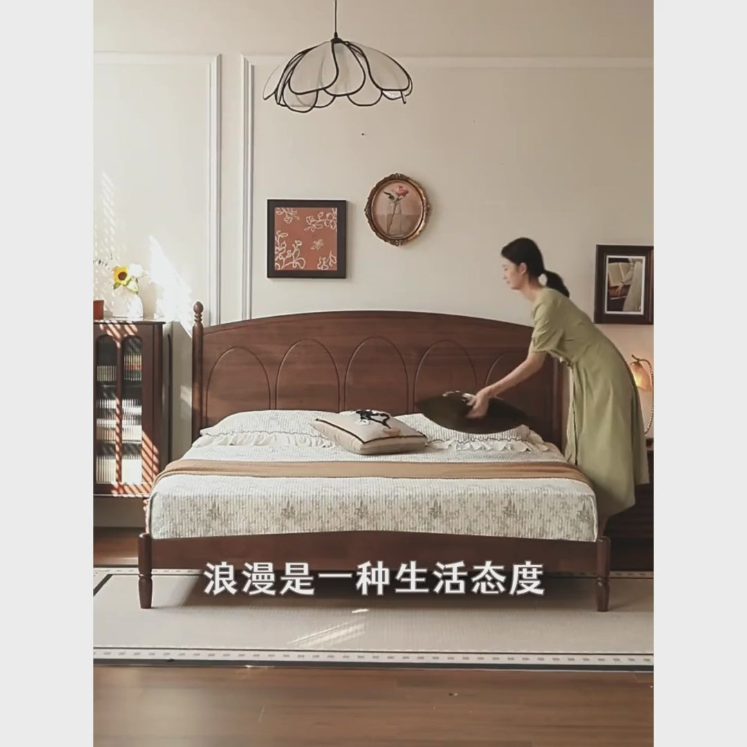 Black Walnut, Poplar Solid Wood Big Bed Retro French