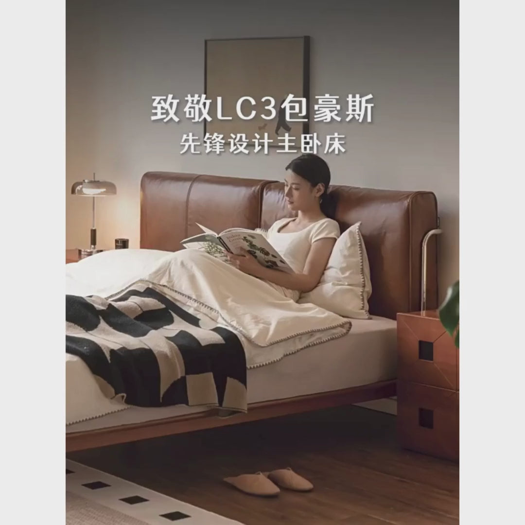 The soft bed in the master bedroom is calm and atmospheric~ 57cm big and soft Filled with white goose down Soft and comfortable, super relaxing The materials are also very powerful widened and thickened bed side Sturdy and stable, sleep peacefully!