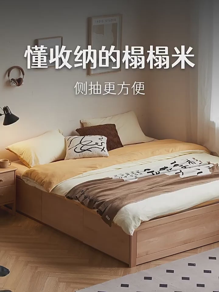 European Beech solid wood platform bed, headboard-free bed with drawer box bed.