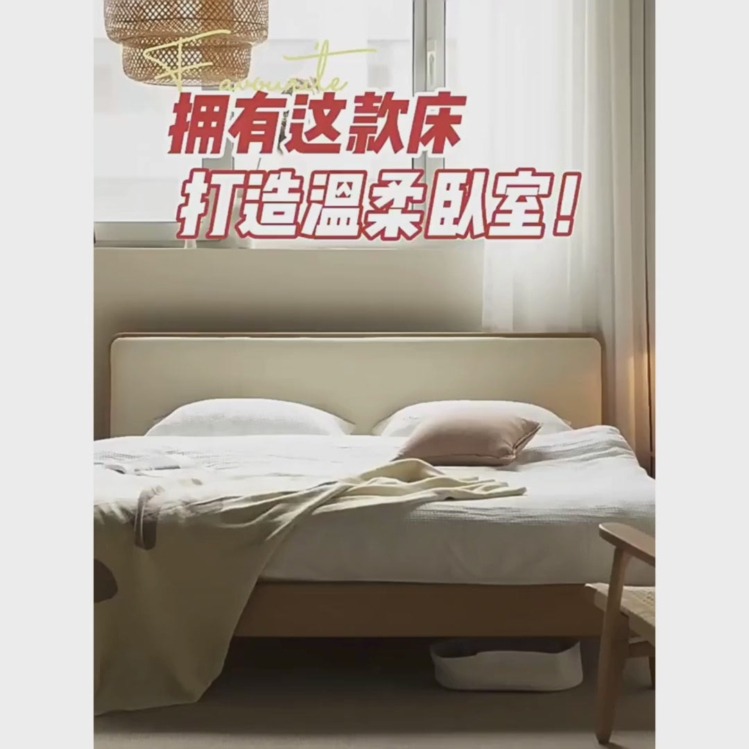 European Beech Solid Wood Bed — Soft Headboard, Simple Upholstered Light Luxury Bed