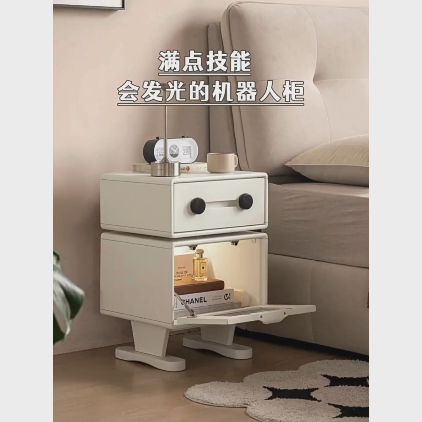 Solid Rubberwood Cream Style Nightstand