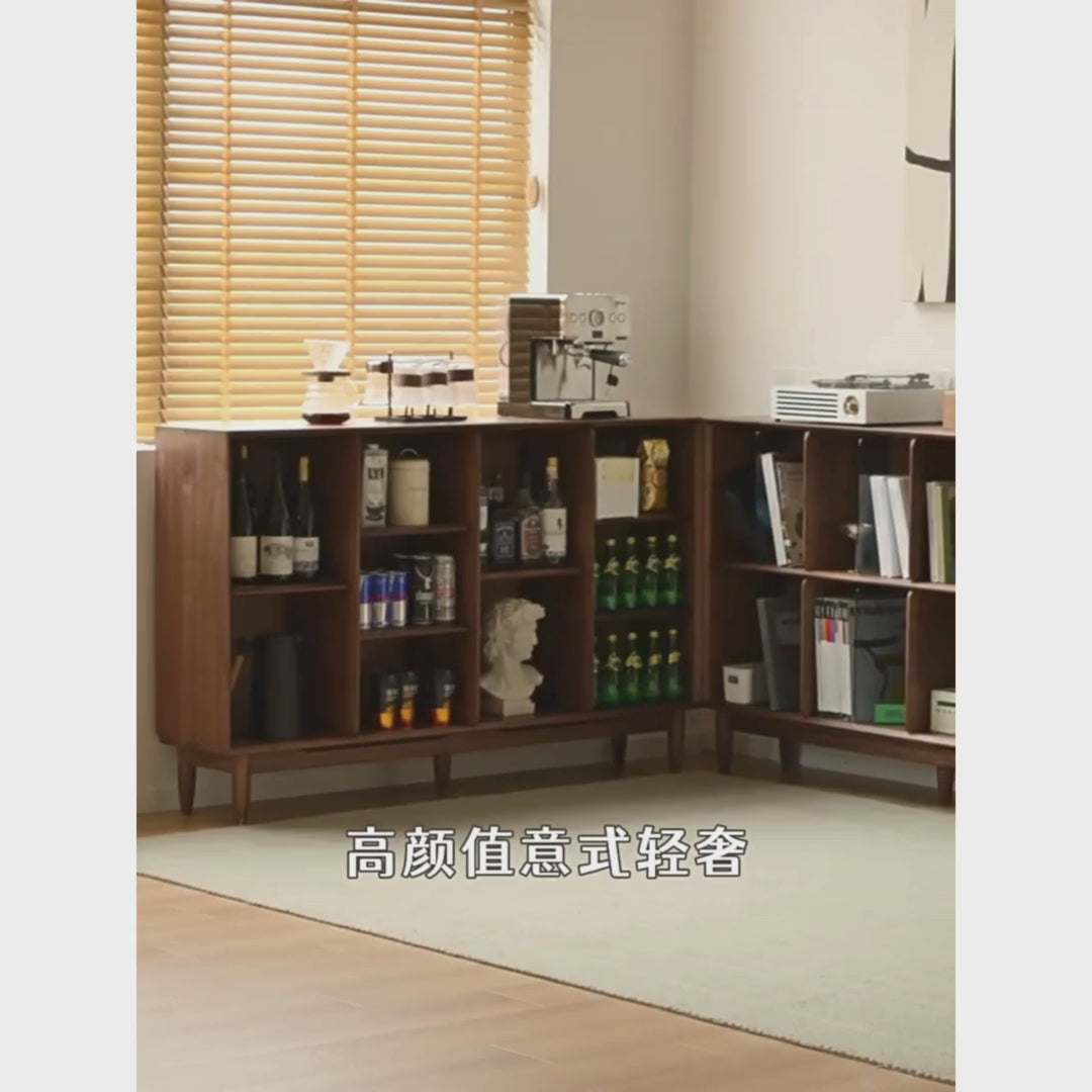 Black Walnut, Oak Solid Wood Bookcase Modern Storage Cabinet.